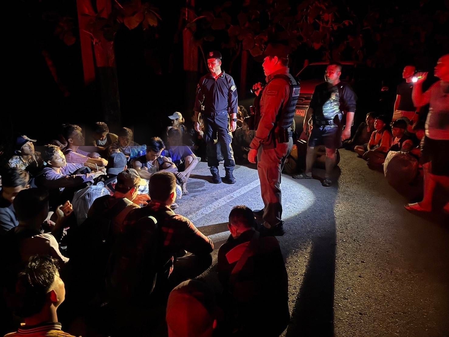 ผู้สื่อข่าวรายงานว่า เมื่อเวลา 00.30 น.วันนี้ 14 ก.ย.68 นายอธิสรรค์ อินทร์ตรา ผู้ว่าราชการจังหวัดกาญจนบุรี พล.ต.อัษฎาวุธ ปันยารชุน ผบ.พล.ร.9 พล.ต.ต.พรชัย ชลอเดช ผบก.ภ.จว.กาญจนบุรี พ.ต.อ.สันติ พิทักษ์สกุล ผกก.สภ.สังขละบุรี นายสุริยศักดิ์ เหมือนอ่วม นายอำเภอสังขละบุรี พ.อ.พรรณศักย์ เพรียวพานิช ผบ.ร.29/ผบ.ฉก.ลาดหญ้า กองกำลังสุรสีห์ พ.อ.ปิยะเณศร์ ภัทรศาศวัตวงษ์ รอง ผบ.ร.29/รอง ผบ.ฉก.ลาดหญ้า กองกำลังสุรสีห์ พ.ต.อ.กรณ์ สมคะเณย์ ผกก.ตม.จว.กาญจนบุรี พ.ต.อ.มานิต นาโควงศ์ ผกก.ตชด.13 (ค่ายพระพุทธยอดฟ้า)พ.ต.ท.กิตติณัติ์ ปรีชาวุฒิวงศ์ รอง ผกก.ป.สภ.สังขละบุรี พ.ต.ต.ประดิษฐ์ แร่เพชร สวป.สภ.สังขละบุรี ได้รับแจ้งจากสายข่าวว่าจะมีกลุ่มบุคคลซึ่งเป็นแรงงานต่างด้าวชาวเมียนมา หลบหนีข้ามชายแดนเข้ามาในราชอาณาจักรไทยเป็นจำนวนมาก
