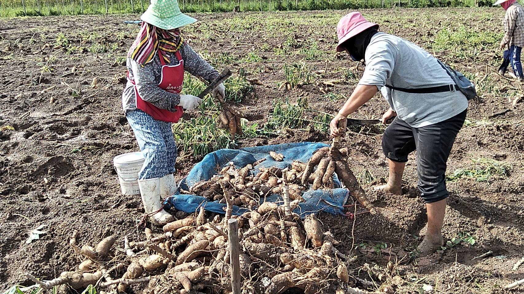 วันที่ 19 กย.68 ผู้สื่อข่าวรายงานว่าเกษตรกรชาวไร่มันสำปะหลังต.วังตะเคียน อ.กบินทร์บุรี จ.ปราจีนบุรี เดินลุยโคลนตมเก็บหัวมันสำปะหลังในไร่ หลังจากปล่อยทิ้งแช่น้ำ2วันไม่สามารถเก็บหัวมันฯออกจากไร่ส่งขายให้กับลานรับซื้อมันฯได้ เนื่องจากเกิดฝนตกหนักติดต่อกันมา2วันจึงปล่อยหัวมันแช่ดินเปียกน้ำในไร่ เมื่อคืนเกิดฝนตกหนักลงมาอีกทั้งคืน จึงตัดสินใจใช้แรงงานเดินลุยดินตมโคลนเก็บหัวมันฯที่ไถคาไว้2วันที่ผ่านมา