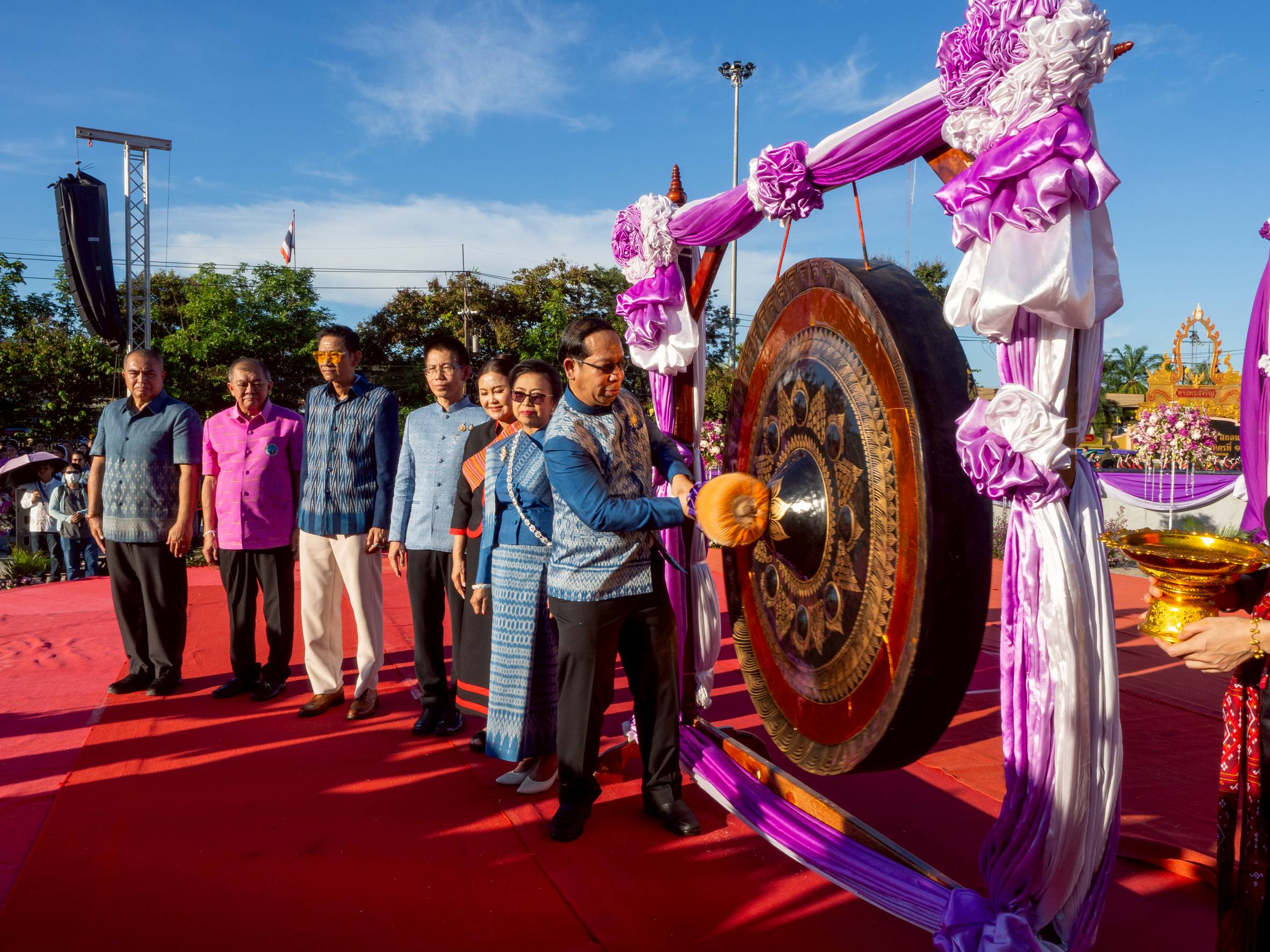 (2 ต.ค.68) ที่ลานรวมใจไทสกล และบริเวณประติมากรรมหนองหาร ประตูเมืองสกลนคร ซึ่งเป็นสถานที่ในการประกอบพิธีบวงสรวงพระธาตุเชิงชุม สักการะสิ่งศักดิ์สิทธิ์คู่บ้านคู่เมือง และ รำเปิดเมืองสู่ขวัญตุ้มโฮม แห่ปราสาทผึ้ง ประจำปี 2568 โดยมีนายชูศักดิ์ รู้ยิ่ง ผู้ว่าราชการจังหวัดสกลนคร เป็นประธานในพิธี พร้อมด้วย รองผู้ว่าราชการจังหวัดสกลนคร นายกเหล่ากาชาดจังหวัดสกลนคร นายกองค์การบริหารส่วนจังหวัดสกลนคร นายกเทศมนตรีนครสกลนคร หัวหน้าส่วนราชการ นายอำเภอ องค์กรปกครองส่วนท้องถิ่น ภาคเอกชน รวมทั้งนางรำ ที่แต่งกายในชุดชนเผ่า จาก 18 อำเภอ รวมกว่า 10,000 คน เข้าร่วม พาหรมณ์ประกอบพิธีบวงสรวงพระธาตุเชิงชุม สักการะสิ่งศักดิ์สิทธิ์คู่บ้านคู่เมือง และพิธีบายศรีสมโภชปราสาทผึ้ง ผู้ว่าราชการจังหวัดสกลนคร ลั่นฆ้องชัย 9 ครั้ง เป็นสัญลักษณ์ของการเริ่มรำเปิดเมืองสู่ขวัญตุ้มโฮม แห่ปราสาทผึ้งสกลนคร ปี 2568
