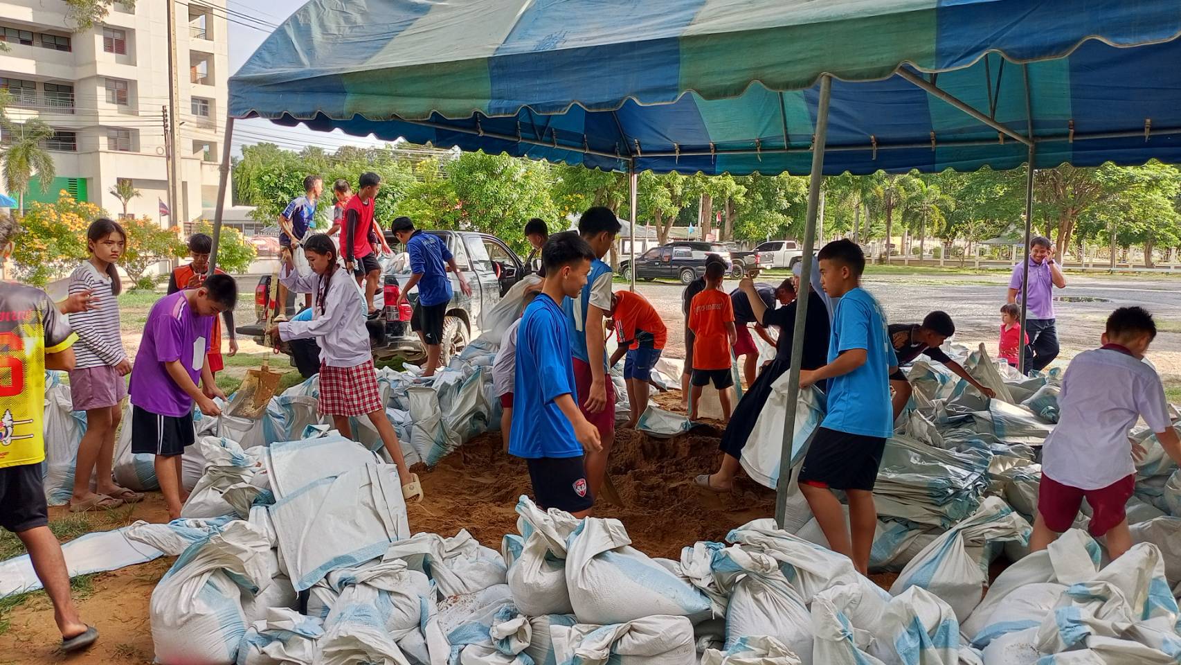 บรรยากาศเต็มไปด้วยความสามัคคี ทั้งบาทหลวง ผู้ใหญ่บ้าน ผู้ช่วยผู้ใหญ่บ้าน ผู้อำนวยการ คณะครู นักเรียน และประชาชน ต่างช่วยกันอย่างไม่เกี่ยงงาน ถือเป็น “ภาพตัวอย่างของความร่วมมือระหว่างวัด–โรงเรียน–ชุมชน” ที่สะท้อนถึงพลังน้ำใจในยามยาก เพื่อปกป้องบ้านเรือนและสถานที่สำคัญของชุมชนให้ปลอดภัยจากน้ำท่วมครั้งนี้