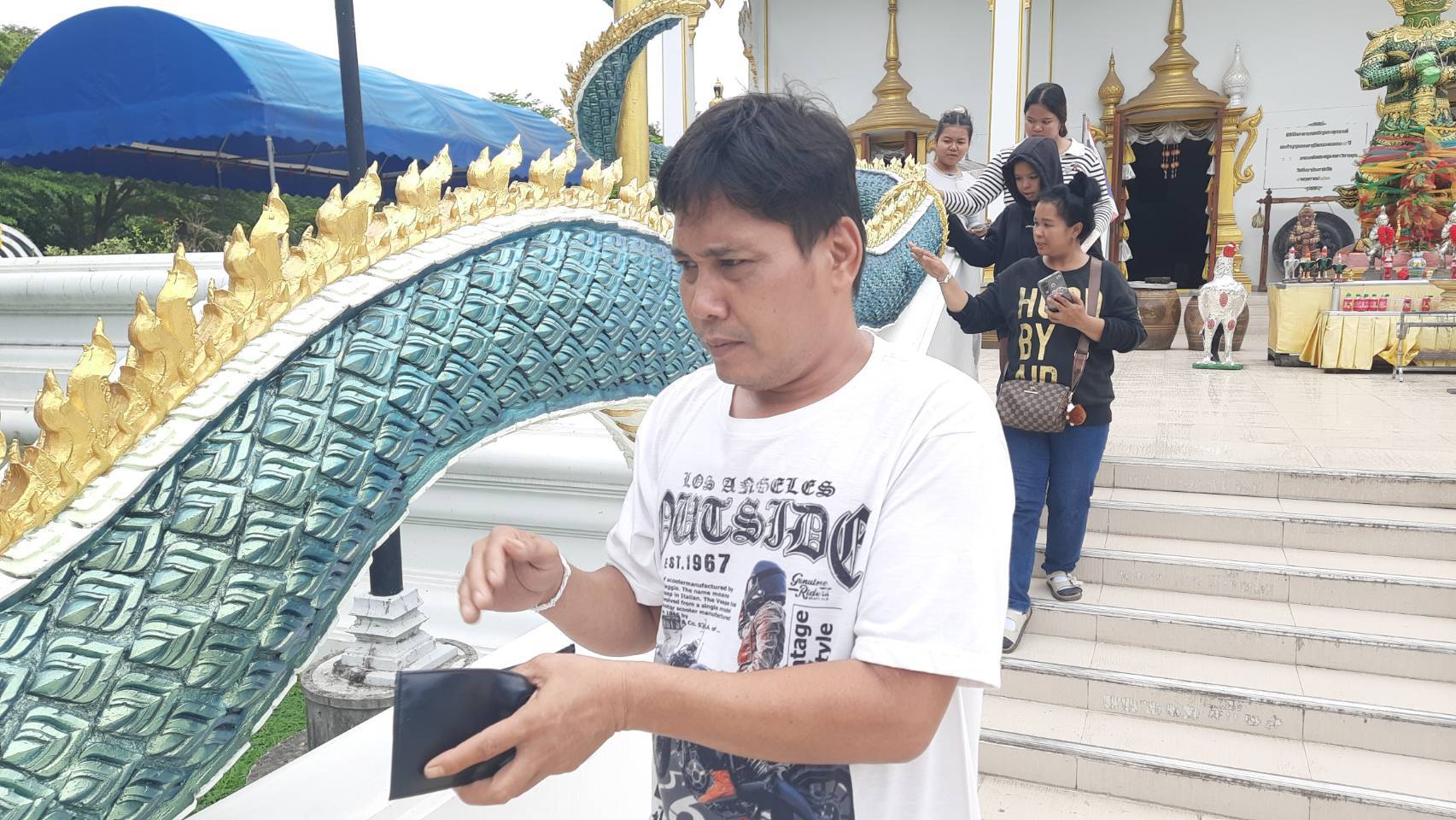 ทั้งนี้ได้มีสายมูคนหนึ่ง ได้ยกมือถือแล้วทำท่าโกยเกล็ดพญานาคเข้าไปในมือถือ ผู้สื่อข่าวจึงสงสัย จึงเข้าไปสอบถาม ได้ใจความว่าตนเองไม่ได้เอากระเป๋าสตางค์มา จึงใช้สแกนคิวอาร์โค้ดแทนก็น่าจะแทนกันได้ ขณะที่สายบุญบางส่วนก็ร่วมกันถวายสังฆทานเพื่อเป็นสิริมงคลแก่ชีวิตและครอบครัวตอนกลับบ้านอีกด้วย