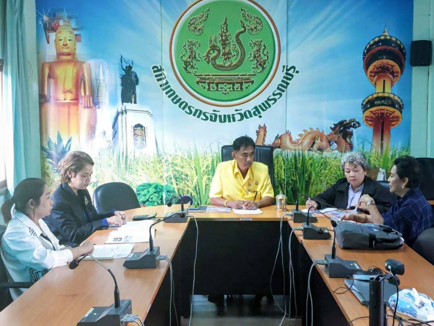 นายสงบ สุขสำราญ ประธานสภาเกษตรกรจังหวัดสุพรรณบุรี และคณะฯ เปิดบ้านต้อนรับ คุณกัญษภรณ์ กิจรุ่งจามรเลิศ แบรนด์ SUPER ในเรื่องโครงการ มินิปั๊มชุมชน เพื่อบริการแก่สมาชิกเกษตรกรและภาคขนส่ง