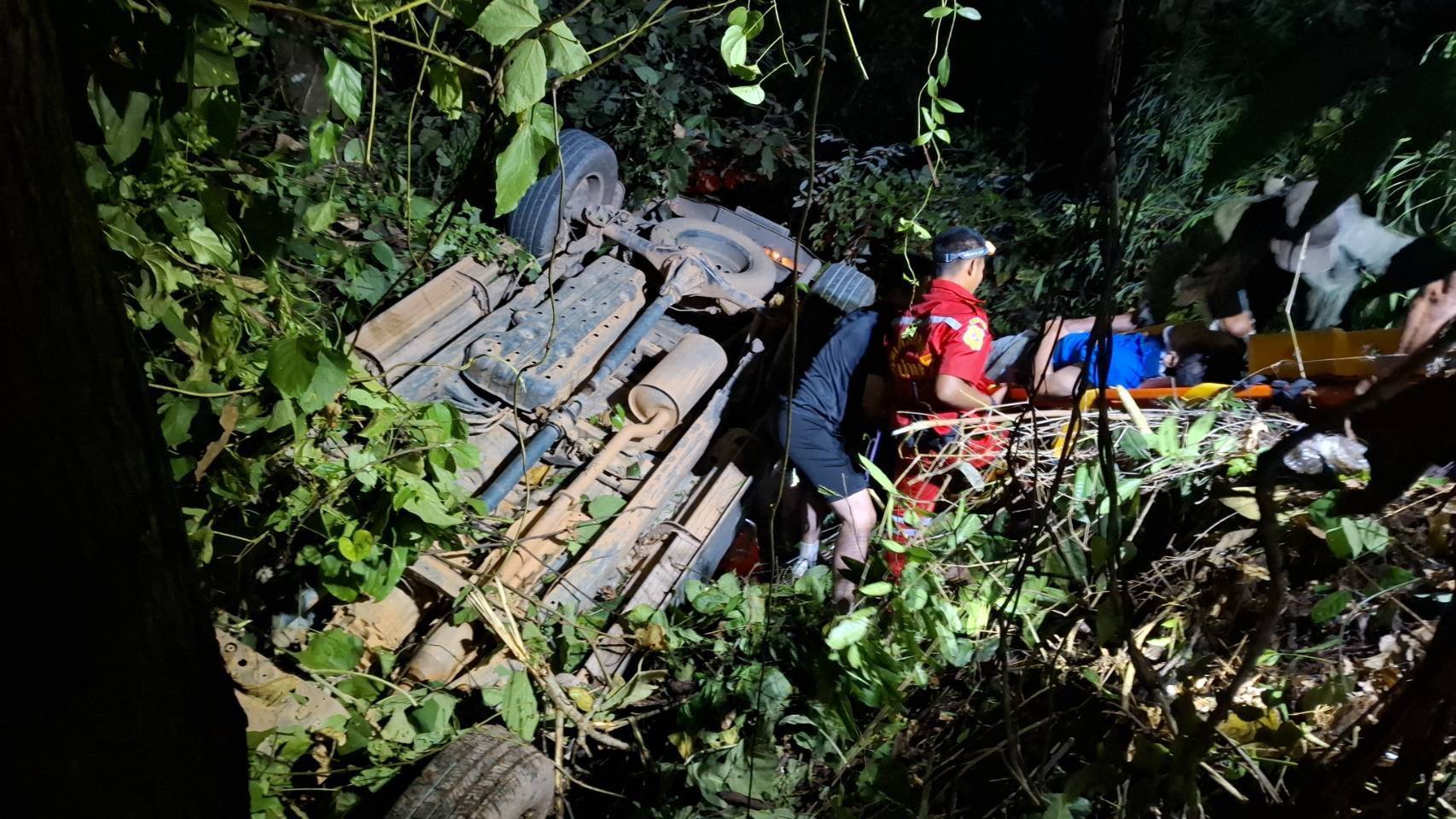 บริเวณจุดเกิดเหตุเป็นทางโค้งลงเขาลาดชันสูง ด้านข้างเป็นเหวลึกกว่า 100 เมตร เจ้าหน้าที่ใช้เวลาประมาณ 1 ชั่วโมงในการเข้าช่วยเหลือ เนื่องจากพื้นที่มืดและเข้าถึงยาก โดยสามารถช่วยเหลือผู้บาดเจ็บทั้ง 6 รายออกมาได้ทั้งหมด และให้การปฐมพยาบาลเบื้องต้นก่อนลำเลียงส่งโรงพยาบาลบ่อเกลือ เพื่อให้แพทย์ดูแลอาการต่อไป