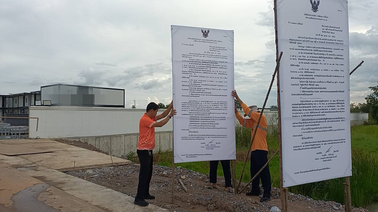 วันที่ 10 ตค.68 องค์การบริหารส่วนตำบลนนทรี (อบต.)ติดป้ายระงับการก่อสร้างอาคารโรงงานของบริษัทแห่งหนึ่ง