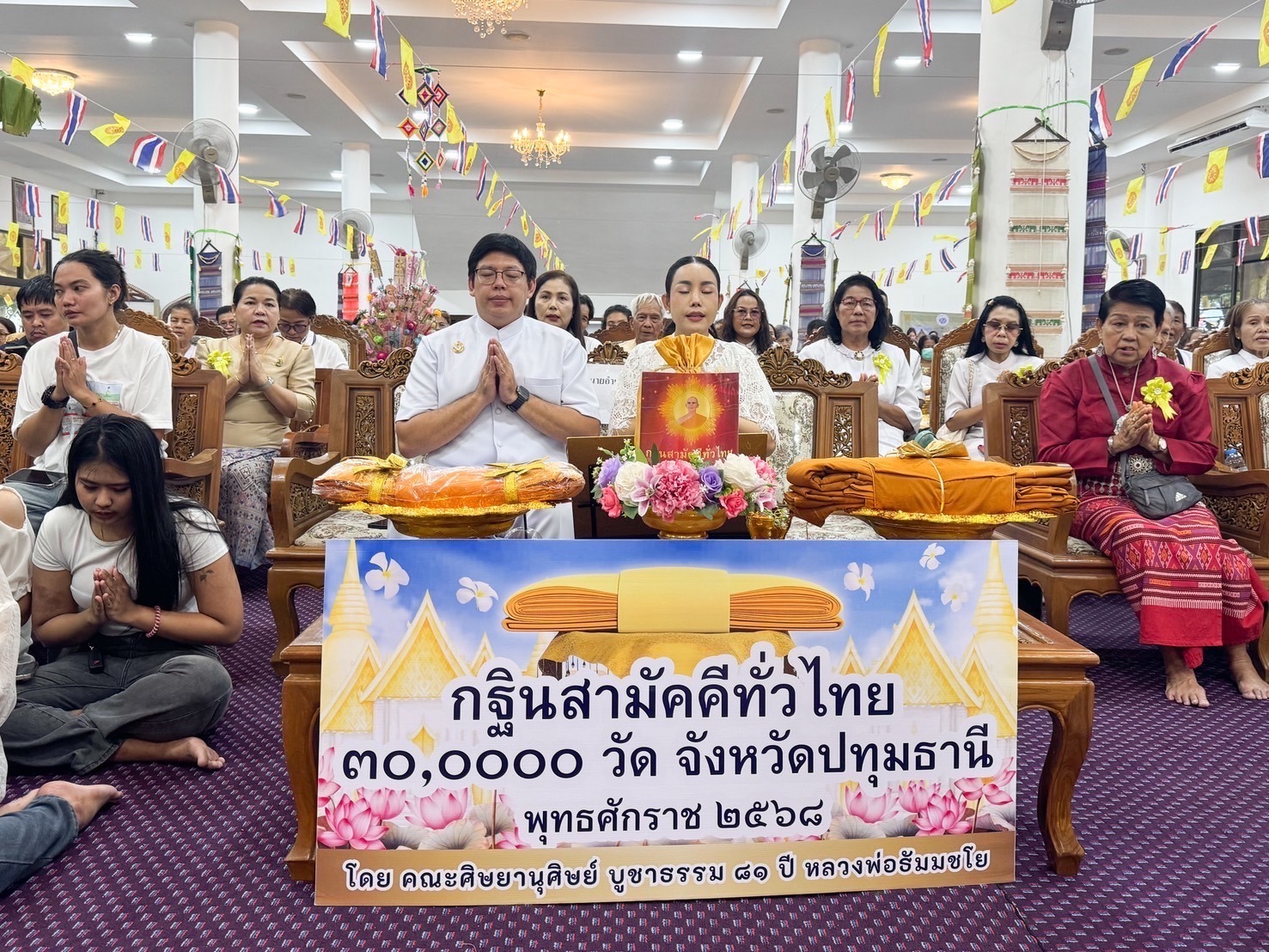 โอกาสนี้ นายอำเภอคลองหลวง เป็นประธานจุดธูปเทียนบูชาพระรัตนตรัย คณะสงฆ์เจริญพระพุทธมนต์ จากนั้น ประธานทอดกฐิน นายอำเภอคลองหลวง และนายองอาจ ณฐ ธรรมนิทา ผู้แทนโครงการทอดกฐินสามัคคีทั่วไทย 30,000 วัด โดย คณะศิษยานุศิษย์ บูชาธรรม 81 ปี หลวงพ่อธัมมชโย นำกล่าวคำถวายฯ ตามลำดับ นำมาซึ่งความปลื้มปีติใจในบุญทอดกฐิน ซึ่งเป็นอริยประเพณีคู่พระพุทธศาสนามาเป็นเวลากว่า 2,500 ปี และถือเป็นยอดมหากุศลบุญใหญ่ประจำปี อันจะนำไปสู่ความมั่นคงของพระพุทธศาสนาสืบไป