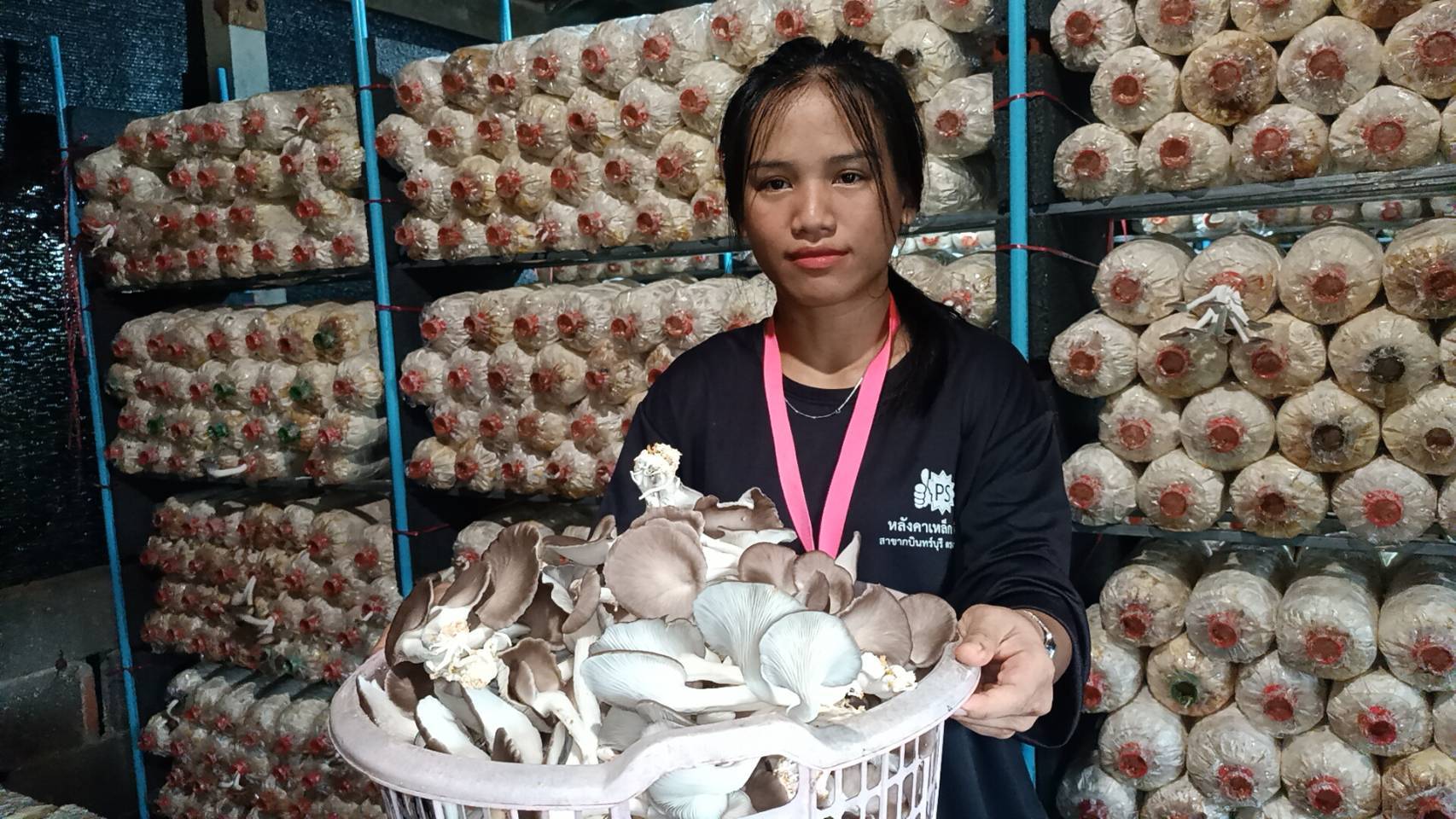 วันที่ 14 ตค.68 พบสาวโรงงานวัย 23 ปีหันมาประกอบอาชีพเสริมโดยการทำเห็ดนางฟ้าภูฐานสร้างรายได้เพิ่ม มีรายได้จะรายได้ประจำก่อนเข้าทำงานโรงงานจะตื่นเก็บเห็ดแต่เช้า เก็บเห็ดในโรงเรือนจากนั้นนำเห็ดมาตัดตีนเห็ดออกแล้วใส่ถุงช่างเป็นกิโลกรัม โดยขายส่งกิโลกรัมละ 70 บาท ขายปลีกกิโลกรัมละ 80 บาท เฉลี่ยมีรายได้ทุกวันวันละ 3-400 บาทต่อวัน ทุกเช้าเก็บเห็ด20-25 กิโลกรัมบางวันเห็ดจะออก30กิโลกรัมลงทุนครั้งเดียว 20,000 บาทเศษ เห็ดออกดอก3-5เดือน
