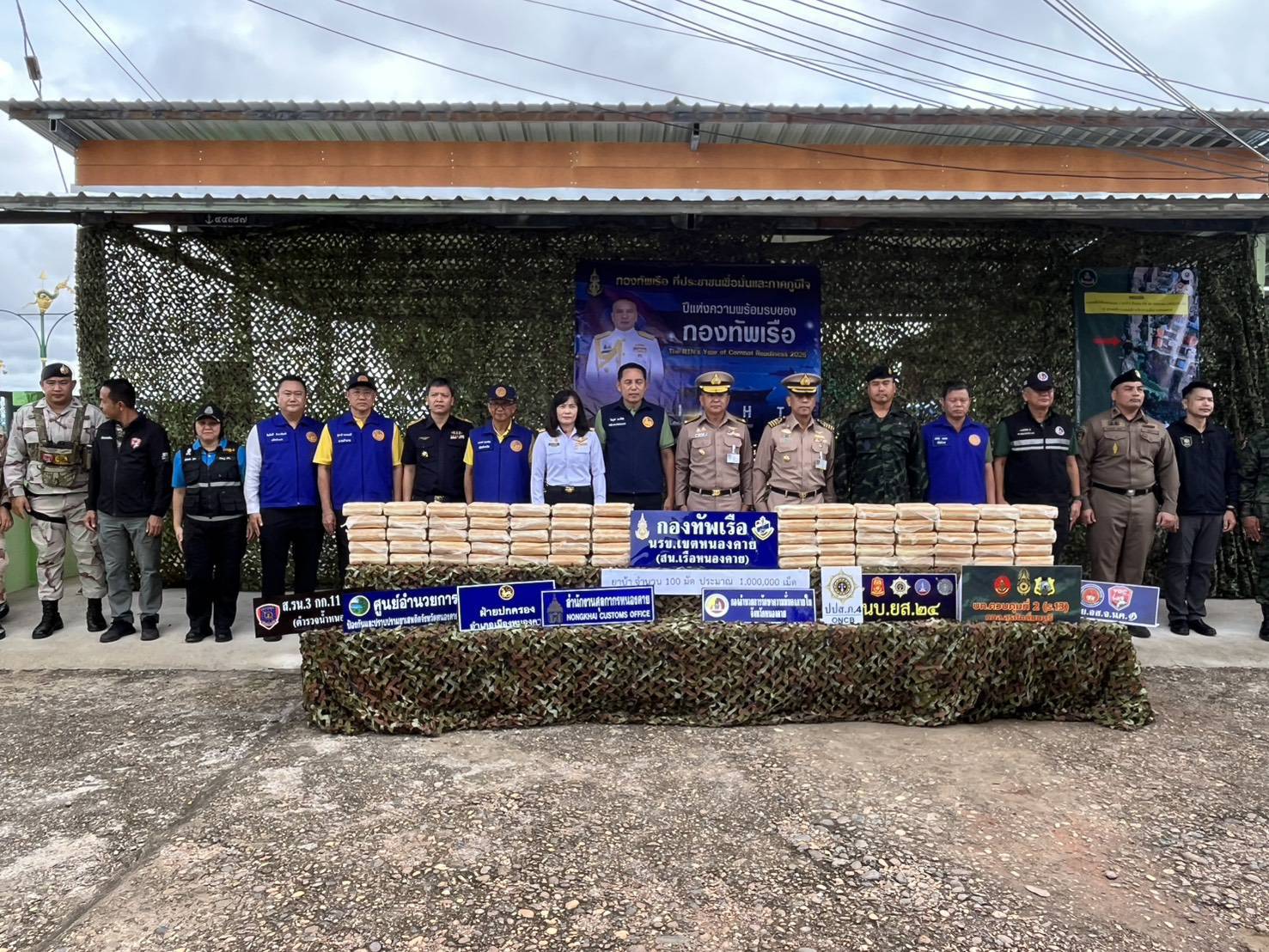 สืบเนื่องเมื่อวันที่ 13 ต.ค. 68 พล.ร.ต.ณรงค์ เอมดี ผบ.นรข. ได้รับแจ้งจากสายลับ จะมีการลักลอบนำสิ่งผิดกฎหมายจากประเทศเพื่อนบ้าน เข้ามาในราชอาณาจักรไทย บริเวณบ้านจอมแจ้ง ต.สีกาย อ.เมือง จ.หนองคาย จึงได้สั่งการ น.อ.วิศิษฐ์พงศ์ เจริญวิชยเดช ผบ.นรข.เขตหนองคาย จากนั้นได้สั่งการ น.ท.อริยะ ทองมั่น หน.สน.เรือหนองคาย จัดชุดปฏิบัติการข่าว/ชุด ลว. แบ่งกำลังออกเป็น 2 ชุด ชุ่มเฝ้าตรวจบริเวณวัดศรีสว่าง และท้ายเชื่อน บ.พร้าวใต้ กระทั่งเวลาประมาณ 21.30 น. ชุดที่ 2 ได้ยินเสียงเรือกีบเพลายาวแล่นมาจากฝั่ง สปป.ลาว จึงใช้กล้องส่องเวลากลางคืนตรวจพบเรือกีบเพลายาว จำนวน 1 ลำ ดับเครื่องยนต์ลอยเข้าฝังประเทศไทย บริเวณจุดจอดเรือ บ.จอมแจ้ง สังเกตเห็น มีการนำกระสอบมาทิ้งบริเวณชายฝั่งแม่น้ำโขง แล้วติดเครื่องยนต์ แล่นกลับ สปป.ลาว จนท. จากนั้นได้ประสานไปยังชุดที่ 1 ให้เฝ้าติดตามเรือดังกล่าวและแจ้งให้ผู้บัญชาการทราบ ก่อนเข้าตรวจสอบพื้นที่ พบกระสอบบรรจุวัตถุต้องสงสัย จำนวน 6 กระสอบ เปิดดูพบเป็นยาบ้า จึงร่วมกันนำมาตรวจสอบอย่างละเอียดที่ สน.เรือหนองคาย รวมยาบ้าที่ตรวจยึดครั้งนี้ จำนวนกว่า 1ล้านเม็ด จึงได้ทำบันทึกการตวจยึด ก่อนนำของกลางทั้งหมด ส่ง สภ.เมืองบ้านเดื่อ เพื่อดำเนินการตามกฎหมายต่อไป