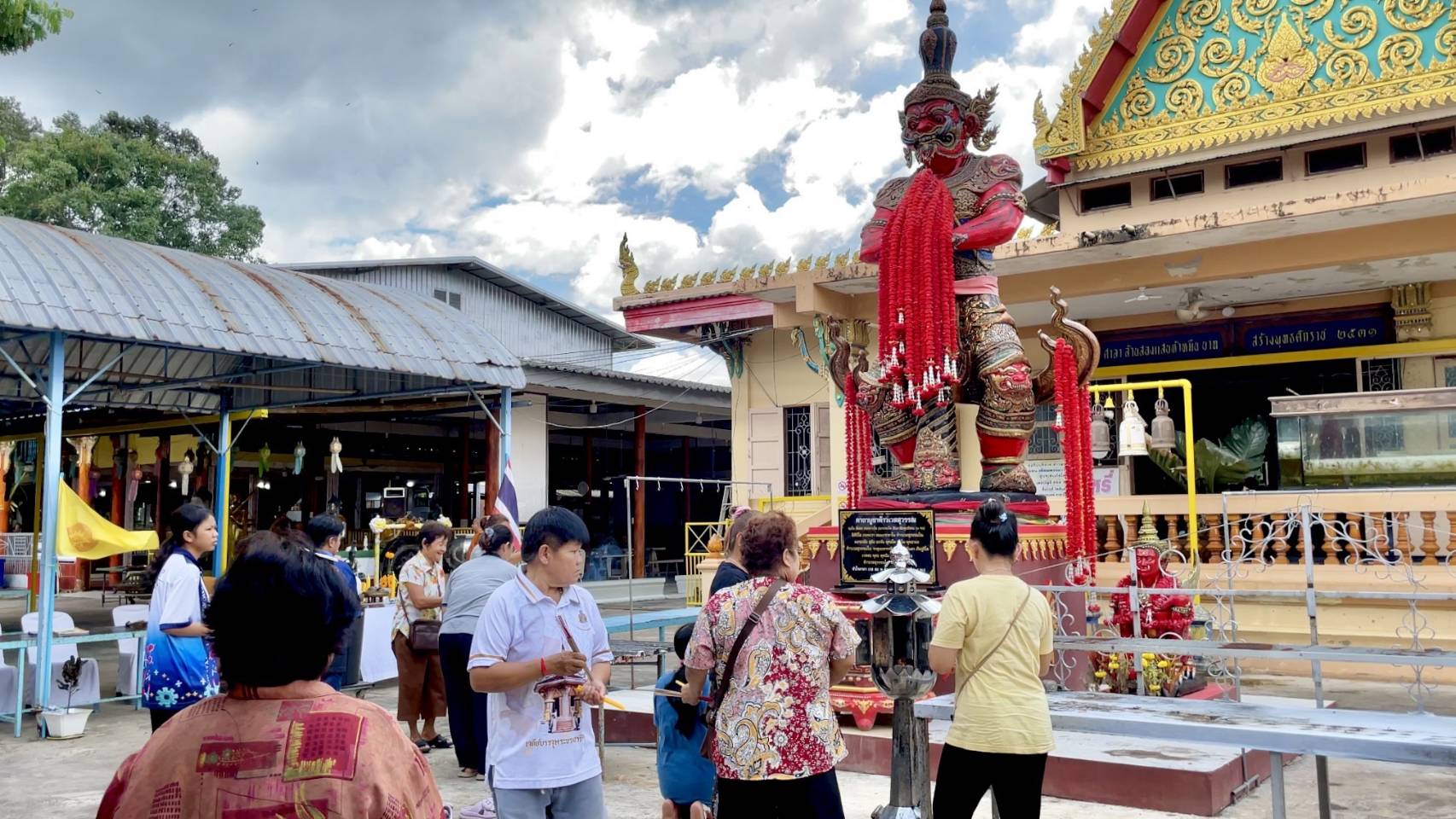 จากนั้นผู้ร่วมพิธีได้นั่งเรียงที่เก้าอี้เพื่อให้พระอาจารย์ได้อาบน้ำมนต์ให้ ซึ่งชาวบ้านเชื่อหลังจากได้มาอาบน้ำมนต์แล้ว ทำให้ชีวิตดีขึ้น เจริญรุ่งเรืองขึ้น บางคนเพิ่งเคยมาเป็นครั้งแรกก็รู้สึกดีและชอบในพิธีกรรมนี้ ดูเข้มขังศักดิ์สิทธิ์ เพราะไม่ได้มีอาบทุกวันจะต้องอาบตามฤกษ์เท่านั้น
