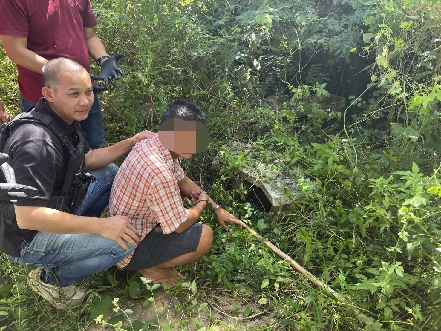 วันที่ 18 ต.ค.68 รายงานว่าเมื่อวันที่ 17 ต.ค. 68 เวลาประมาณ15.00 น. พล.ต.ต.อัทธชนม์ ช่วงงาม ผบก.ภ.จว.หนองคาย , พ.ต.อ.จิรวิทย์ ปานยิ้ม ผกก.สภ.เมืองหนองคาย ได้สอบถามผู้ต้องหา หลังได้หลบหนีหลังก่อเหตุ ถูกเจ้าหน้าที่ติดตามจับกุมได้ ทราบชื่อนายอภิชาติ อายุ 42 ปี และนายวินัย อายุ 42 ปี ทั้ง 2 เป็นหลานของผู้ตา& ย และเป็นชาวบ้านสามัคคี ต.หาดคำ อ.เมือง จ.หนองคาย หลังจากเจ้าหน้าที่ ชุดสืบสวน สภ.เมืองหนองคาย ร่วมกับชุดสืบสวนกองกำกับการสืบสวนตำรวจภูธรจังหวัดหนองคาย ร่วมกันสืบสวนติดตามและสามารถจับกุมนายอภิชาติ ได้ในพื้นที่ใกล้ บ้านส่วน นายวินัย จับกุมได้ที่บริเวณใกล้ บึงหนองคาย ต.วัดธาตุ อ.เมืองหนองคาย ได้ พร้อมอาวุธมีดดายหญ้าที่ใช้ในการก่อเหตุ ส่วนอาวุธปืน ผู้ต้องหาได้โยนลงแม่น้ำโขงบริเวณใกล้กระชังปลาพื้นที่ตำบลหาดคำ อ.เมืองหนองคาย