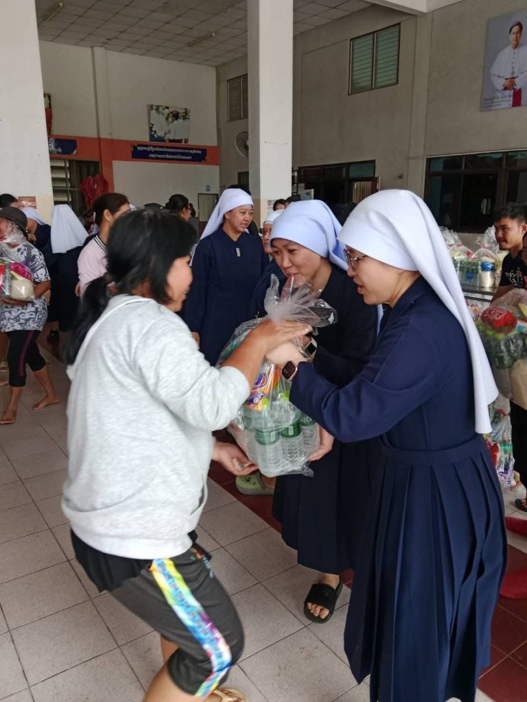 วันที่ 18 พฤศจิกายน 2568 เวลา 10.30 น. คณะภคินีพระหฤทัยของพระเยซูเจ้าแห่งกรุงเทพฯ (อารามพระหฤทัยคลองเตย) ได้กรุณาเดินทางฝ่าความลำบากจากสถานการณ์น้ำท่วม เพื่อมาเยี่ยมเยียนและมอบถุงยังชีพให้แก่พ่อ แม่ พี่ น้องใน หมู่บ้านพระหฤทัย หมู่ที่ 3 ตำบลโรงช้าง อำเภอพรหมบุรี จังหวัดสิงห์บุรี ซึ่งได้รับผลกระทบจากอุทกภัย ณ โรงเรียนพระกุมารเยซู สิงห์บุรี