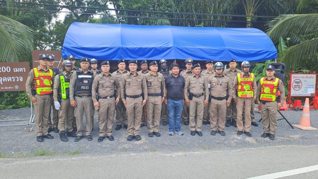ผู้สื่อข่วรายงานว่าที่บริเวณถนนเพชรเกษม ม.3 ต.บางเตย อ.เมืองพังงา จ.พังงา พล.ต.ต.ชัยเกียรติ วิริยสถิตกุล ผู้บังคับการตำรวจภูธรจังหวัดพังงา พร้อมด้วย เปิดจุดตรวจตรวจจุดสกัดสะพานยาวบางเตย โดยมี พ.ต.อ.วีระพงศ์ รักขิโต ผกก.สภ.เมืองพังงา กล่าวรายงาน พร้อมด้วยเจ้าหน้าที่ตำรวจ สภ.เมืองพังงาเข้าร่วม