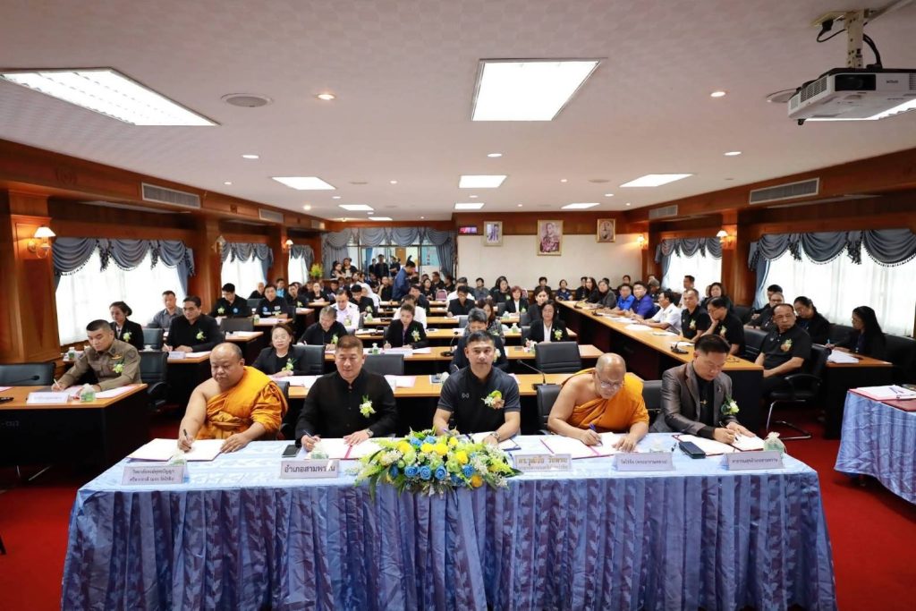 วันที่ 19พ.ย. 2568 อำเภอสามพราน เทศบาลเมืองไร่ขิงและภาคีเครือข่าย นายอานนท์ ลิขิตวัฒนกิจ ปลัดอำเภอหัวหน้ากลุ่มงานบริหารงานปกครอง รักษาราชการแทนนายอำเภอสามพราน(ป.อาวุโส) จังหวัดนครปฐมร่วมด้วยนดร.วุฒิชัย วังพรม  (นายกหวอ) นายกเทศมนตรีเมืองไร่ขิง คณะสงฆ์ เจ้าหน้าที่วัดไร่ขิง พระอารามหลวง สาธารณสุขอำเภอสามพราน คณะผู้บริหารเทศบาล สมาชิกสภา ผู้นำชุมชน หัวส่วนราชการและพนักงานเทศบาลเมืองไร่ขิง จัดพิธีลงนามบันทึกข้อตกลงความร่วมมือ (MOU) เครือข่ายหน่วยงานประสานความร่วมมือแก้ไขปัญหาความเดือดร้อน และช่วยเหลือประชาชน ตามโครงการจัดประชุมประชาคมเทศบาลเมืองไร่ขิง และการจัดเวทีประชาคมชุมชนเข้มแข็ง ประจำปีงบประมาณ 2569 ณ ห้องประชุมชั้น สำนักงานเทศบาลเมืองไร่ขิง อำเภอสามพราน จังหวัดนครปฐม