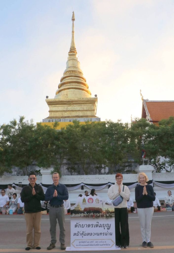 เช้าวันที่ 22 พฤศจิกายน 2568 เวลา 07.00 น. บริเวณหน้าคุ้มหลวงนครน่าน นายบรรจง ขุนเพชร รองผู้ว่าราชการจังหวัดน่าน ได้นำพุทธศาสนิกชนและนักท่องเที่ยวร่วมทำบุญ “ตักบาตรเติมบุญ หน้าคุ้มหลวงนครน่าน” ท่ามกลางบรรยากาศยามเช้าที่เย็นสบาย