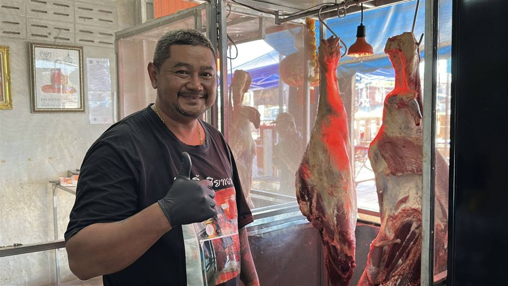 ผู้สื่อข่าวเดินทางไปที่ร้านเขียงเนื้อเฮีย ทอช หรือนายณัฎธวุธ ประหยัดยา 41 ปี ที่หน้าโรงเรียนพังขว้างวัฒนศิลป์ ต.พังขว้าง อ.เมืองสกลนคร เป็นร้านขายเนื้อวัวสดขึ้นชื่อ นอกจากนี้ยังเป็นร้านขายลาบ ก้อยขม ต้มแซ่บ เนื้อย่าง ซอยจุ๊ แจ่วฮ้อนสูตรโบราณขมๆแซ่บๆ แต่ละวันมีผู้นิยมเนื้อวัวมาซื้อไปรับประทานกันแย่างไม่ขาดสาย นอกจากนี้ ยังมานั่งทานตอนเย็นๆกันแน่นร้าน