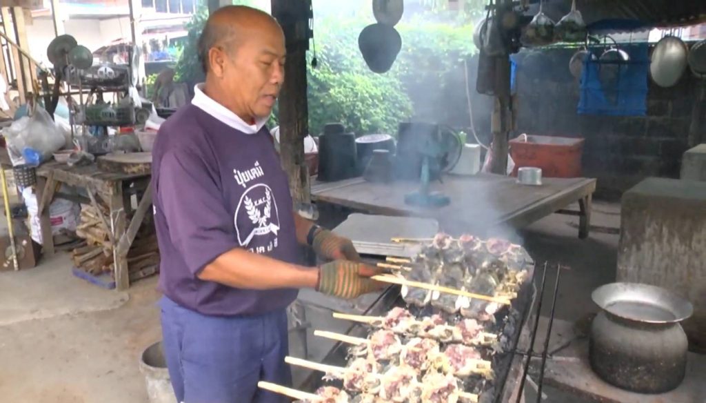 ลุงสุข ยังกล่าวอีกว่า ที่ทำขายเพียงเท่านี้ก็หมดทั้งวันแล้ว เพราะต้องชำแหละออกล้างให้สะอาด และนำมาย่างไฟให้แฟ้งเหลืองน่ารับประทาน ตอนเช้าทำแค่ 15 ไม้ ตอนเย็นอีก 15 ไม้ หากถามว่าทำมากกว่านี้ได้ไหมตอบว่าได้แต่เหนื่อย พอใจทำวันละ 30 ไม้ เมื่อหักค่าวัสดุ เช่น ไม้ปิ้ง ลวด ถ่าน หัวอาหาร หักลบแล้วเหลือกำไรดพียงวันละ 300 บาท แม้จะน้อยแต่ก็ได้ทั้งวัน ปละมีความสุขที่ได้ปบ่งปันให้กับชาวบ้าน หากใครที่ชอบทานกบสั่งได้ที่ 0654867253
