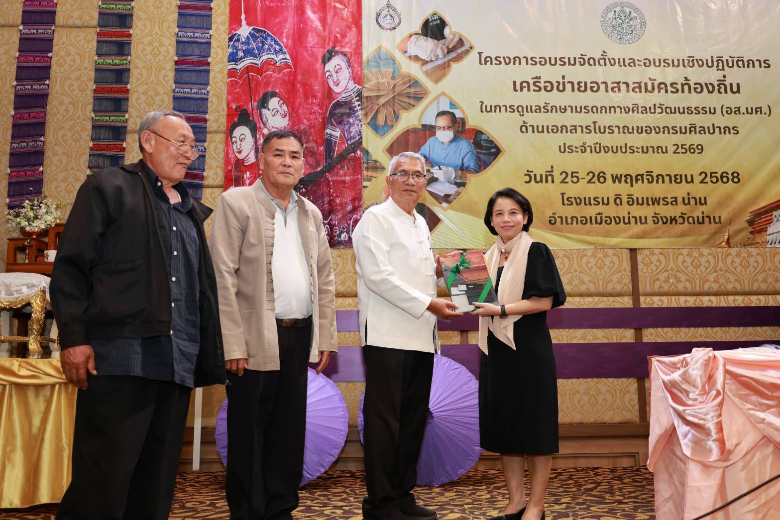 วันที่ 25–26 พฤศจิกายน 2568 ทีม “ม้าแก่” นำโดย อาจารย์สมเจตน์ วิมลเกษม ทำหน้าที่วิทยากรในการอบรมเชิงปฏิบัติการ “การสร้างเครือข่ายอาสาสมัครท้องถิ่นในการดูแลรักษามรดกทางศิลปวัฒนธรรม (อส.มศ.)” ด้าน เอกสารโบราณ ของกรมศิลปากร ในหัวข้อ “เครือข่ายเข้มแข็งและพัฒนาต่อยอดงานด้านเอกสารโบราณของจังหวัดน่าน”