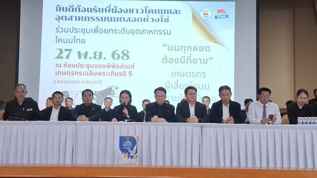 ผู้สื่อข่าวรายงานว่า เมื่อเวลา 13.00 น. วันที่ 27 พ.ย.68 นางสาววัชรี วรรณศรี ผู้อำนวยการองค์การส่งเสริมกิจการโคนมแห่งประเทศไทย (อ.ส.ค.) จัดประชุมเพื่อยกระดับอุตสาหกรรมโคนมไทย พร้อมเปิดเวทีให้เกษตรกรได้นำปัญหาของเกษตรกรผู้เลี้ยงโคนมทั่วประเทศ ณ ห้องประชุมชั้น 3 อาคารเฉลิมพระเกียรติฯ พิพิธภัณฑ์เฉลิมพระเกียรติ ฯ ถนนพหลโยธิน ต.คลองหนึ่ง อ.คลองหลวง จ.ปทุมธานี เพื่อรับฟังปัญหา วางกฎกติกาตลอดจนข้อเสนอแนะและแก้ไขราคานมที่ตกต่ำ โดยมีเกษตรกรผู้เลี้ยงโคนมทั่วประเทศ รวมทั้งผู้ประกอบการอุตสาหกรรมนมเอกชนและหน่วยงานที่เกี่ยวข้องทุกภาคส่วน เข้าร่วมประชุมในครั้งนี้จำนวนมาก
