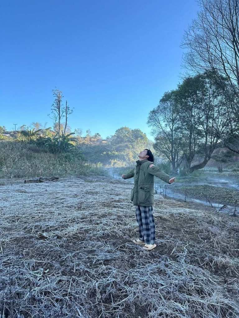 เกล็ดน้ำแข็งเล็กๆ ละอองขาวใสแต่งแต้มไปทั่วสวน ราวกับผืนดินถูกโรยผงจากยามค่ำคืน ทำให้นักท่องเที่ยวและชาวบ้านต่างออกมาบันทึกภาพด้วยความตื่นเต้น