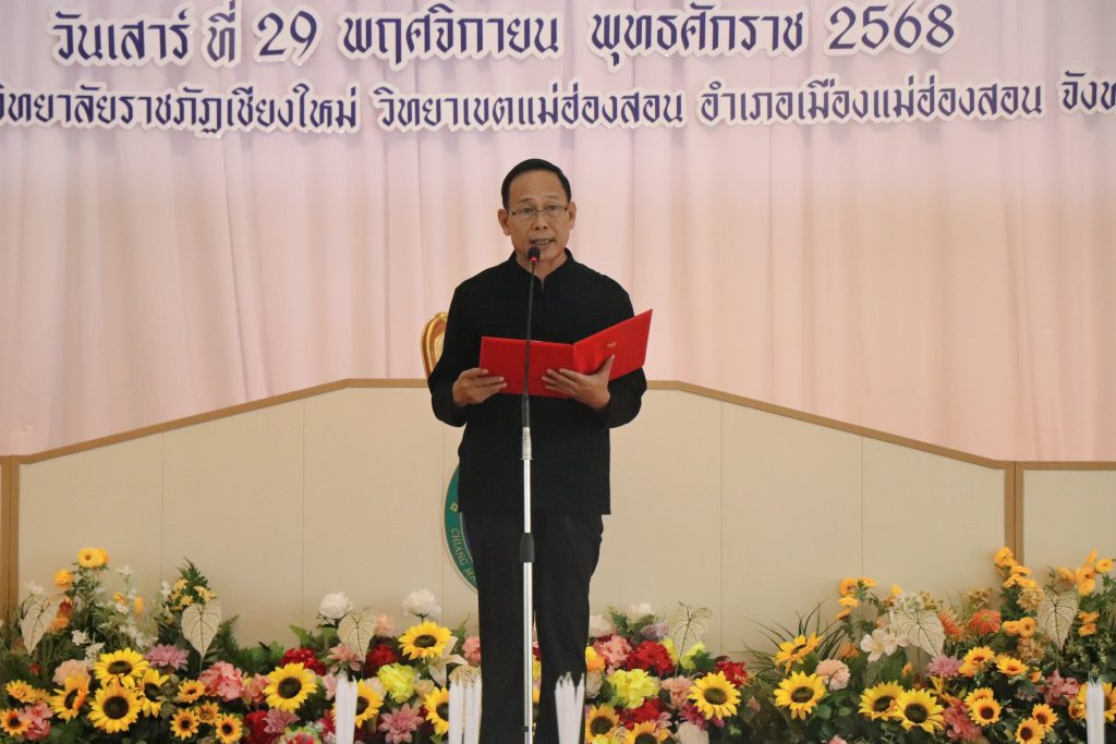วันที่ 29 พฤศจิกายน 2568 ที่หอประชุมมหาวิทยาลัยราชภัฏเชียงใหม่ วิทยาเขตแม่ฮ่องสอน ตำบลปางหมู อำเภอเมือง จังหวัดแม่แม่ฮ่องสอน นายวิบูรณ์ แววบัณฑิต ผู้ว่าราชการจังหวัดแม่ฮ่องสอน มอบหมายให้ นายบุญลือ ธรรมธรานุรักษ์ รองผู้ว่าราชการจังหวัดแม่ฮ่องสอน กล่าวต้อนรับและแสดงความยินดีในพิธีมอบหมวก เข็มชั้นปี และตะเกียงไนติงเกล สำหรับนักศึกษาชั้นปีที่ 2 คณะพยาบาลศาสตร์ มหาวิทยาลัยราชภัฏเชียงใหม่ วิทยาเขตแม่ฮ่องสอน ประจำปีการศึกษา 2568 โดยมี รองศาสตราจารย์ ดร.ชาตรี มณีโกศล อธิการบดีมหาวิทยาลัยราชภัฏเชียงใหม่ เป็นประธานในพิธี โดยภายในพิธีมีผู้ร่วมงาน ประกอบด้วย หัวหน้าส่วนราชการ ผู้ทรงคุณวุฒิ ผู้นำองค์กรปกครองส่วนท้องถิ่น คณาจารย์ บุคลากร ผู้ปกครอง นักศึกษาคณะพยาบาลศาสตร์ มหาวิทยาลัยราชภัฏเชียงใหม่ วิทยาเขตแม่ฮ่องสอนร่วมพิธี