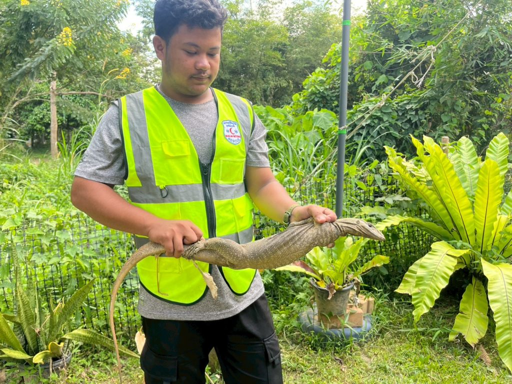 โดยชาวบ้าน เล่าว่า ขณะที่เปิดประตูหลังบ้าน ได้เห็นสัตว์เลื้อยคลาน ตกใจวิ่งหาทางออกอย่างอลหม่าน จึงได้ใช้คราดพลาสติก ไล่ให้ออกจากประหลังบ้าน แต่เจ้าตะกวดน่าจะตกใจกลับวิ่งหาทางออกจนหัวไปติดตาข่ายพลาสติก คาดว่าน่าจะมาจากคลองหลังบ้านเพื่อหาปลาเป็นอาหาร หรือออกมาหาแหล่งวางไข่ในฤดูฝน และเกรงจะเข้าไปในบ้าน จึงโทรแจ้งกู้ภัยเข้าช่วยจับปล่อยคืนสู่ธรรมชาติต่อไป สร้างความปลาบปลื้มใจ ให้กับชาวบ้านเป็นอย่างมาก ถึงความมีจิตอาสาของการเป็นหน่วยกู้ภัย ที่อุทิศตนเพื่อสังคมอย่างแท้จริง