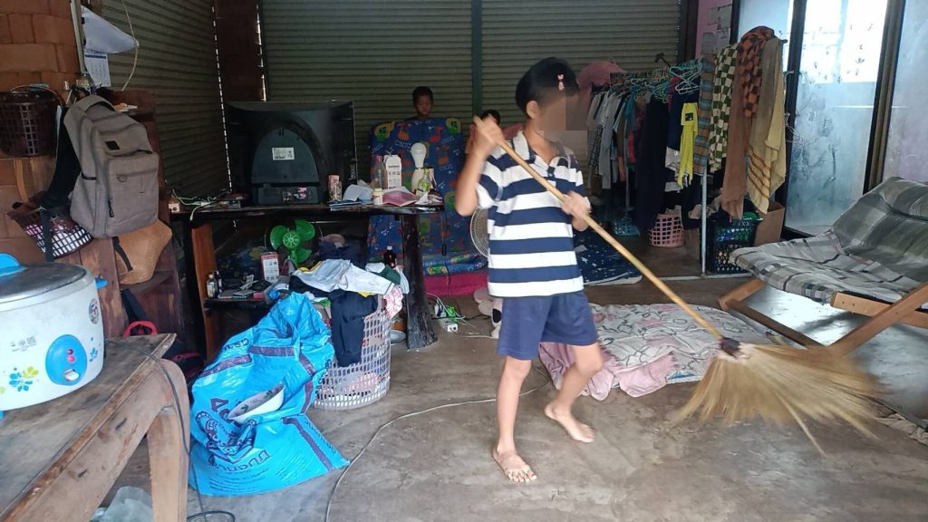 ผู้สื่อข่าวจะเดินทางไปยังบ้านเลขที่ดังกล่าววันนี้วันที่ 5 เป็นวันพ่อแห่งชาติลูกชายวัย 13 ปี บอกให้พ่อไปตรวจสุขภาพกับทางโรงพยาบาลรพ.สต.ย่านรีที่ออกให้บริการตรวจสุขภาพแก่ประชาชน ซึ่งเป็นปกติไม่ว่าจะเป็นพ่อหรือลูกๆได้ของกินก็จะนำกลับมากินที่บ้านเพื่อให้ทุกคนได้กินกันพร้อมหน้าพร้อมตา วันนี้ดช.เจริญชัย (น้องบอส) อายุ 13 ปี เป็นคนหุงอุ่นข้าว ดญ.วิภา (น้องปุ๊ก)อายุ 11 ปี กวาดบ้านซักผ้า ดช.รุ่งเรือง (น้องจอร์จ) อายุ 10 ปี และดช.ไพศาล (น้องกี้)อายุ 8 ปี เก็บที่นอนทั้งหมดเรียนอยู่โรงเรียนแห่งหนึ่งในหมู่บ้าน