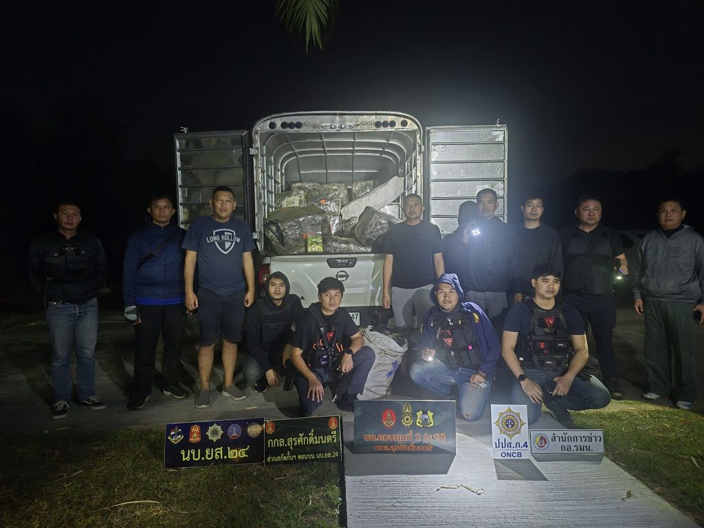 หนองคาย กกล.สุรศักดิ์มนตรี ร่วมกับหน่วยงานความมั่นคง รวบหนุ่มชาวหนองคาย ขนยาไอซ์ กว่า 889 กก. ยาเคตามิน 200 กก.หนังเสือโคร่ง 1ผืน ที่บรรทุกมาในรถยนต์ปิคอัพดัดแปลงตู้ทึบ สารภาพเป็นคนรับจ้างขนทำครั้งนี้เป็นครั้งที่ 3