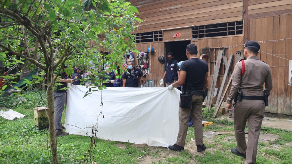จุดเกิดเหตุเป็นบ้านไม้ชั้นเดียวปลูกอยู่ในสวนผลไม้ ห่างจากถนนประชาอุทิศ ประมาณ 50 เมตร มีชาวบ้านละะแวกใกล้เคียงหลายคนยืนคอยเจ้าหน้าที่และนำเจ้าหน้าที่เดินไปยังบ้านผู้เสียชีวิต เมื่อเปิดประตูบ้านเข้าไป ก็พบว่าที่บริเวณพื้นบ้านมีรอยเลือดซึ่งแห้งแล้วติดอยู่จำนวนมาก และพบศพนายชัยภูมิ แซ่อึ่ง อายุ 63 ปี ไม่ใส่เสื้อ ใส่กางเกงขาสั่น นั่งเสียชีวิตพิงกำแพงของบ้าน ในมือยังถือเหล็กยาวอยู่ และมีบาดแผลที่บริเวณขาข้างซ้าย ตามตัวก็มีรอยเลือดติดอยู่จำนวนมาก คาดเสียชีวิตมาแล้วประมาณ 2-3 วัน เพราะศพเริ่มบวมพอง ส่งกลิ่นเหม็น เจ้าหน้าที่จึงนำศพส่งโรงพยาบาลเบตง เพื่อให้แพทย์ชันสูตรพลิกศพอย่างละเอียดอีกครั้ง
