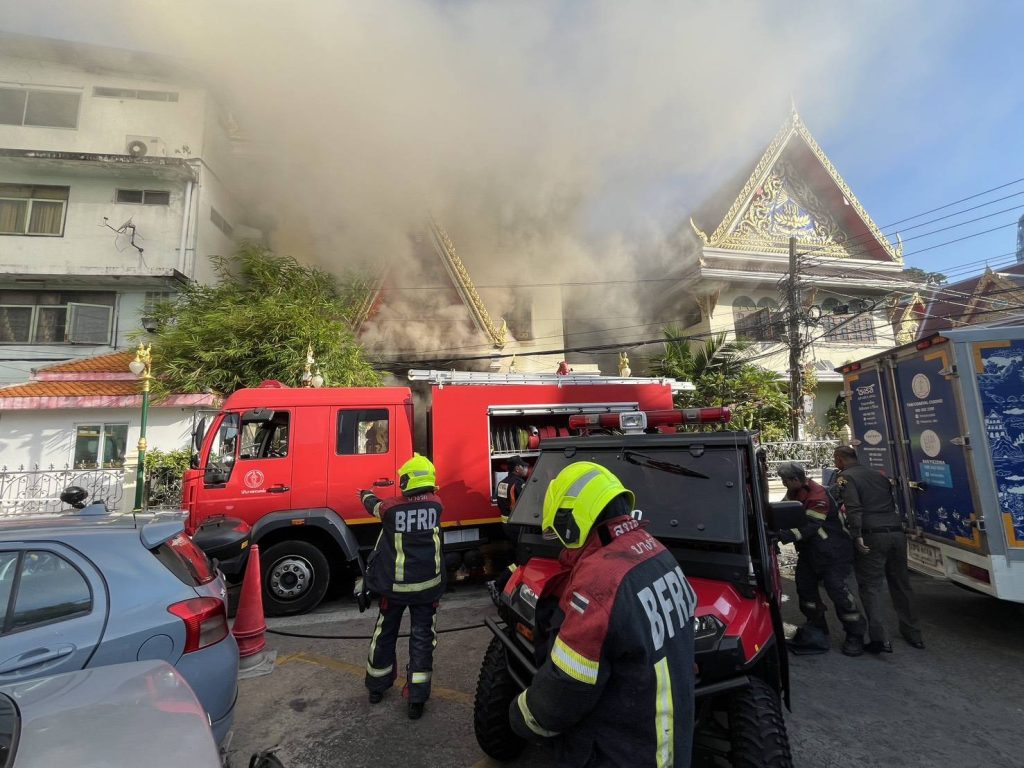 เจ้าหน้าที่ดับเพลิงบางรักเร่งเข้าควบคุมเหตุเพลิงไหม้กุฏิพระภายในวัดมหาพฤฒารามวรวิหาร ถนนมหาพฤฒาราม ใช้เวลาเพียงไม่กี่นาทีสกัดไฟไว้ได้สำเร็จ เบื้องต้นไม่พบผู้บาดเจ็บ