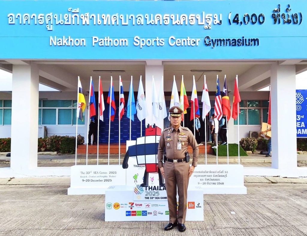 เมื่อเวลา 08.00 น.วันที่ 9 ธันวาคม 2568 ที่ศูนย์กีฬาเทศบาลนครนครปฐม จว.นครปฐม พล.ต.ต.พิทักษ์ อุปพงษ์ ผบก.ภ.จว.นครปฐม พร้อมด้วยพ.ต.อ.อชิรวัตติ์ ถาวรเจิรญวัติ ผกก.สภ.เมืองนครปฐม พ.ต.ท.ธนากฤติ เนตรเกื้อกูล รอง ผกก.จร.สภ.เมืองนครปฐม พ.ต.ท.อภิชัช อาระหัง สวป.สภ.เมืองนครปฐม ว่าที่ พ.ต.ท.นิวัติ อินโอสถ สวป.(ชส) สภ.เมืองนครปฐม พ.ต.ท.ณัฏฐ์ภาส อภิบวรรัชต์ สว.อก.สภ.เมืองนครปฐม ว่าที่ พ.ต.ท.ธวัชชัย จำปาอ่อน สว.จร.สภ.เมืองนครปฐม และเจ้าหน้าที่ชุดสืบสวน กก.สส.ภ.จว.นครปฐม ชุดสืบสวน สภ.เมืองนครปฐม เจ้าหน้าที่ตำรวจ สภ.เมืองนครปฐม ร่วมกันปล่อยแถวเจ้าหน้าที่ตำรวจ สถานีตำรวจภูธรเมืองนครปฐม ในการออกปฏิบัติภารกิจรักษาความปลอดภัย และอำนวยความสะดวกในด้านการจราจร ในการจัดการแข่งขันกีฬาซีเกมส์ ครั้งที่ 33 พ.ศ.2568