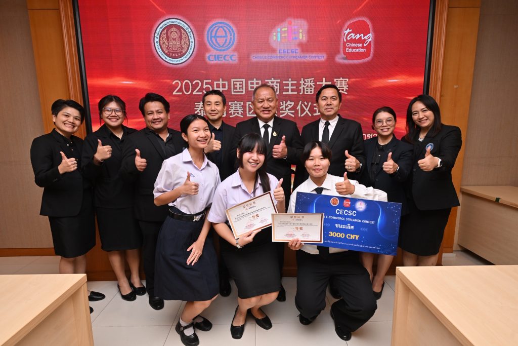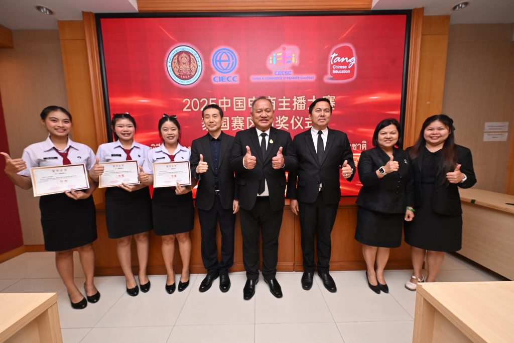 วันที่ 12 ธันวาคม 2568 นายยศพล เวณุโกเศศ เลขาธิการคณะกรรมการการอาชีวศึกษา (เลขาธิการ กอศ.) เป็นประธานมอบเกียรติบัตรและรางวัลการแข่งขันสตรีมเมอร์อีคอมเมิร์ซจีนนานาชาติ ระดับภูมิภาค ปี 2568 เขตพื้นที่การแข่งขันประเทศไทย ณ ห้องประชุม 5 สำนักงานคณะกรรมการการอาชีวศึกษา โดยมี นายหวัง เว่ยหยาง คณบดีสถาบันการศึกษานานาชาติและความร่วมมืออุตสาหกรรมการศึกษา บริษัท ถัง อินเตอร์เนชั่นแนล กรุ๊ป นายธนภัทร แสงจันทร์ ผู้อำนวยการสำนักความร่วมมือ ผู้แทนบริษัท ถัง อินเตอร์เนชั่นแนล เอ็ดดูเคชั่น แอนด์ เทคโนโลยี จำกัด ผู้บริหารสถานศึกษา ครู และนักศึกษา ผู้เกี่ยวข้อง เข้าร่วมออนไซต์ และผ่านระบบออนไลน์ที่สาธารณรัฐประชาชนจีน และประเทศปากีสถาน