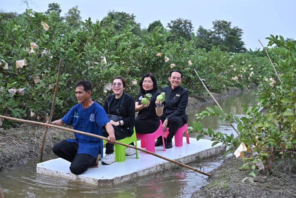 ล่าสุด อธิบดีกรมทรัพย์สินทางปัญญาได้นำคณะผู้บริหารและสื่อมวลชน ลงพื้นที่สวนปานเจริญ ศูนย์การเรียนรู้ชุมชนบ้านหัวอ่าว อำเภอสามพราน จังหวัดนครปฐม โดยมีนางประหยัด ปานเจริญ เป็นประธานศูนย์ฯ ทั้งนี้เพื่อตรวจเยี่ยมแหล่งผลิตและพิสูจน์คุณภาพสินค้าฝรั่งสามพราน ซึ่งได้รับการขึ้นทะเบียน GI เมื่อวันที่ 3 มกราคม 2568 ฝรั่งสามพรานมี 7 สายพันธุ์ ได้แก่ พันธุ์กิมจู พันธุ์สุ่ยมี่ พันธุ์แป้นสีทอง พันธุ์สาลี่ทองไร้เมล็ด พันธุ์หงเป่าสือ พันธุ์เฟิ่นหงมี่ และพันธุ์แตงโม ปลูกในพื้นที่อำเภอสามพรานและอำเภอนครชัยศรี จังหวัดนครปฐม ลักษณะทางภูมิศาสตร์เป็นพื้นที่ลุ่มแม่น้ำนครชัยศรีที่พัดพาตะกอนดินและธาตุอาหารต่างๆ มาทับถมกัน สภาพน้ำที่มีความกร่อยหรือความเค็มที่พอดี ประกอบกับการมีระบบชลประทานที่ดี ทำให้ดินมีความอุดมสมบูรณ์เหมาะแก่การเพาะปลูก ฝรั่งสามพรานจึงมีเอกลักษณ์โดดเด่นและเป็นที่นิยมของผู้บริโภค ด้วยความพิเศษของเนื้อที่กรอบล่อน ไม่ติดเมล็ด เนื้อมีสีขาวหรือสีชมพูขึ้นอยู่กับสายพันธุ์ รสชาติหวานหรือหวานอมเปรี้ยวเล็กน้อย ไม่ฝาด ซึ่งผลผลิตที่ได้จะมีคุณภาพสูงสุดเมื่อปลูกในช่วงฤดูหนาว ฝรั่งสามพรานมีปริมาณผลผลิตกว่า 11,631 กิโลกรัมต่อปี ส่งจำหน่ายในตลาดค้าผลไม้ขนาดใหญ่ ทั้งตลาดไท ตลาดสี่มุมเมือง ตลาดเมืองทอง ตลาดศรีเมือง รวมทั้งร้านค้าเครือข่าย Lemon Farm และแพลตฟอร์มออนไลน์ต่างๆ สามารถสร้างรายได้ให้กับชุมชนกว่า 350 ล้านบาทต่อปี