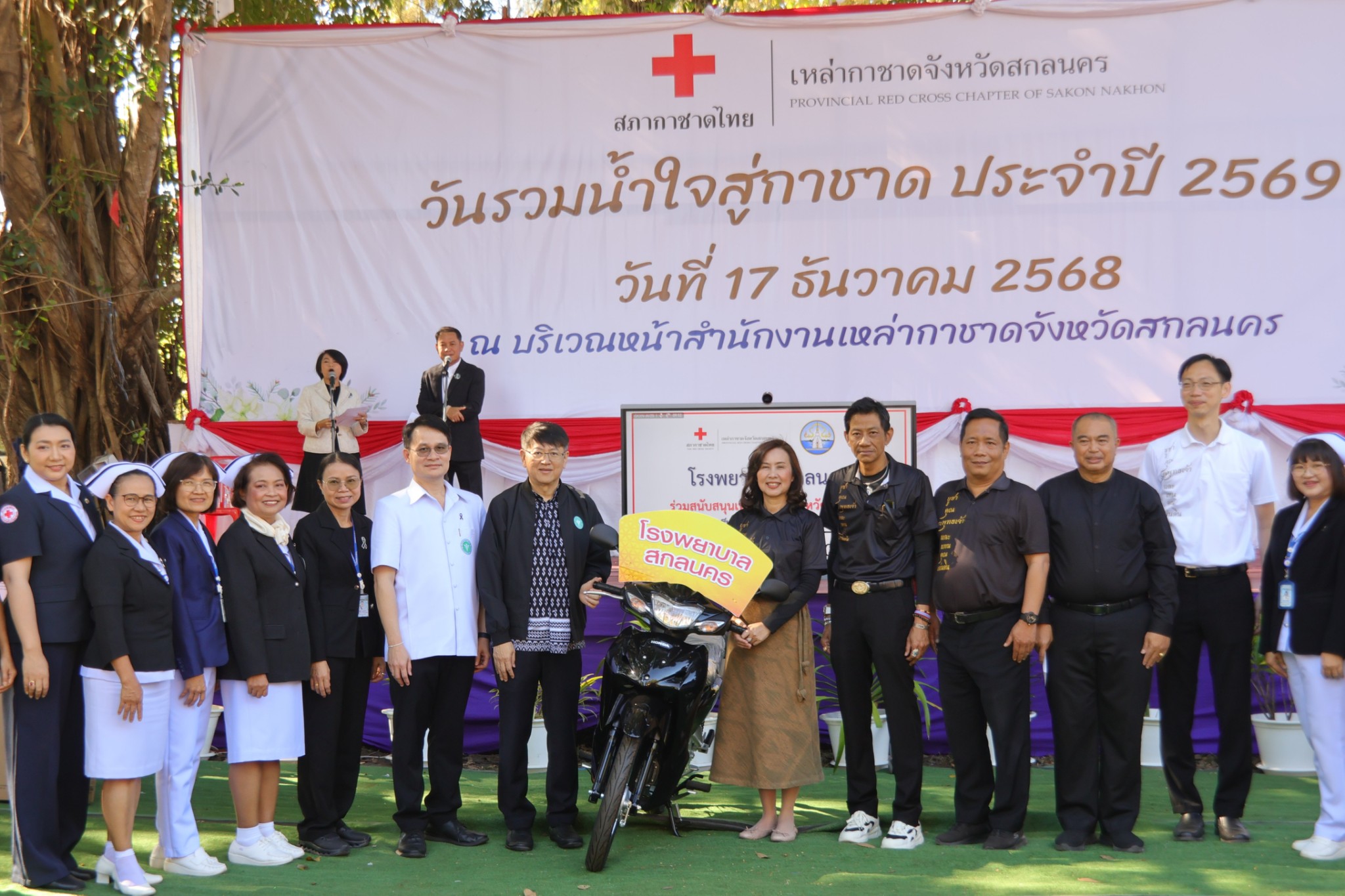 วันนี้ (17 ธ.ค. 68) เวลา 09.00 น. ณ บริเวณหน้าสำนักงานเหล่ากาชาดจังหวัดสกลนคร นางรณิดา เหลืองฐิติสกุล ผู้ว่าราชการจังหวัดสกลนคร ในฐานะนายกเหล่ากาชาดจังหวัดสกลนคร เป็นประธานเปิดงาน “วันรวมน้ำใจสู่กาชาด ประจำปี พ.ศ. 2569” โดยมี นางสาวจิราภรณ์ เบิกบานดี รักษาราชการแทนปลัดจังหวัดสกลนคร และเลขานุการเหล่ากาชาดจังหวัดสกลนคร เป็นผู้กล่าวรายงาน โดยมี รองผู้ว่าราชการ จังหวัดสกลนคร หัวหน้าส่วนราชการ ภาคเอกชน และประชาชนผู้มีจิตศรัทธาเข้าร่วมงานอย่างคับคั่ง