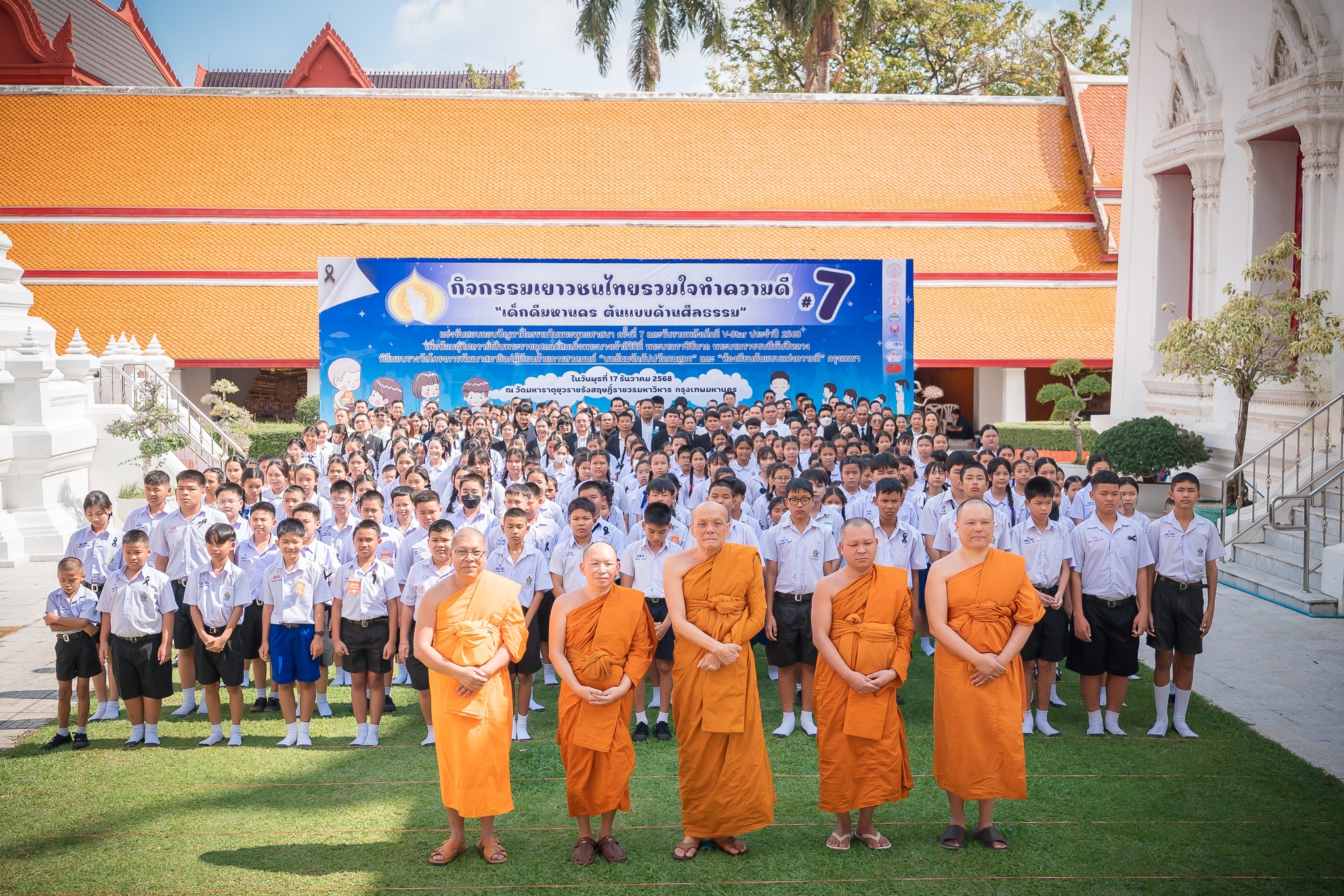 การนี้ พระเดชพระคุณพระพรหมวัชรวิมลมุนี ประธานสงฆ์ เมตตาให้โอวาทความว่า “วันนี้ อาตมภาพ รู้สึกยินดีและปลื้มใจเป็นอย่างยิ่งที่ได้มาพบกับทุกท่านในกิจกรรม “เยาวชนไทยรวมใจทำความดี – เด็กดีมหานคร ต้นแบบด้านศีลธรรม” ซึ่งเป็นกิจกรรมที่สะท้อนให้เห็นว่า ท่านผู้บริหารการศึกษา ผู้อำนวยการโรงเรียน และครูทุกท่านยังให้ความสำคัญกับการพัฒนาคนควบคู่กับการพัฒนาความรู้ คือ พัฒนาทั้ง “เก่ง” และ “ดี” ไปพร้อมกัน กิจกรรมในวันนี้มิใช่เป็นเพียงการจัดสอบแข่งขันตอบปัญหาศีลธธรรม หรือการจัดนิทรรศการทางพระพุทธศาสนาเท่านั้น แต่เป็นการเปิดพื้นที่ให้เยาวชนได้เรียนรู้พระพุทธศาสนา เพื่อปลูกฝังสัมมาทิฏฐิ สามารถนำความรู้ความเข้าใจไปใช่ในชีวิตให้ประสบความสุข และความสำเร็จ ลูก ๆ ได้ เรียนรู้ พุทธประวัติ เพื่อเห็นแบบอย่างชีวิตที่งดงาม เรียนรู้ ศีล5 และกฎแห่งกรรม เพื่อรู้จักการอยู่ร่วมกันอย่างไม่เบียดเบียน เรียนรู้ วันสำคัญทางพระพุทธศาสนา เพื่อเชื่อมโยงศาสนากับชีวิตประจำวัน และได้แสดงความรู้ความสามารถที่ได้ตั้งใจศึกษามาเป็นอย่างดีผ่านการสอบแข่งขันตอบปัญหาศีลธรรมในพระพุทธศาสนา ครั้งที่ 7 ทั้งหมดนี้ เป็นการเรียนรู้ที่ไม่ได้หยุดอยู่แค่ “รู้” แต่ต่อยอดไปสู่ “เข้าใจ” และ “นำไปปฏิบัติจริง”