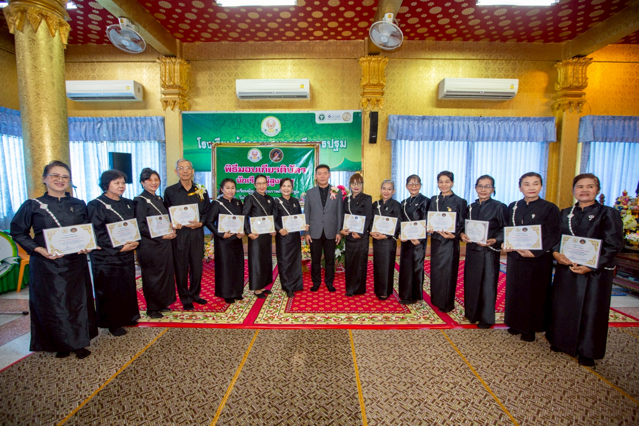 วันที่ 18 ธันวาคม 68 ที่ หอปริยัติธรรม (โรงเรียนผู้สูงอายุสุขภาพดีนครปฐม) วัดไผ่ล้อม พระอารามหลวง จังหวัดนครปฐม นายจิรวัฒน์ สะสมทรัพย์ นายกองค์การบริหารส่วนจังหวัดนครปฐม เป็นประธานในพิธีมอบเกียรติบัตรแก่นักเรียน โรงเรียนผู้สูงอายุสุขภาพดีนครปฐม รุ่นที่ 8 ประจำปี พ.ศ.2568 จำนวน 50 คน โดยมีพระครูปลัดสิทธิวัฒน์ (หลวงพี่น้ำฝน) ผู้รักษาการแทนเจ้าอาวาสฯ เป็นประธานฝ่ายสงฆ์ ร่วมด้วยหัวหน้าส่วนราชการที่เกี่ยวข้องเข้าร่วมในพิธีโดยพร้อมเพรียง
