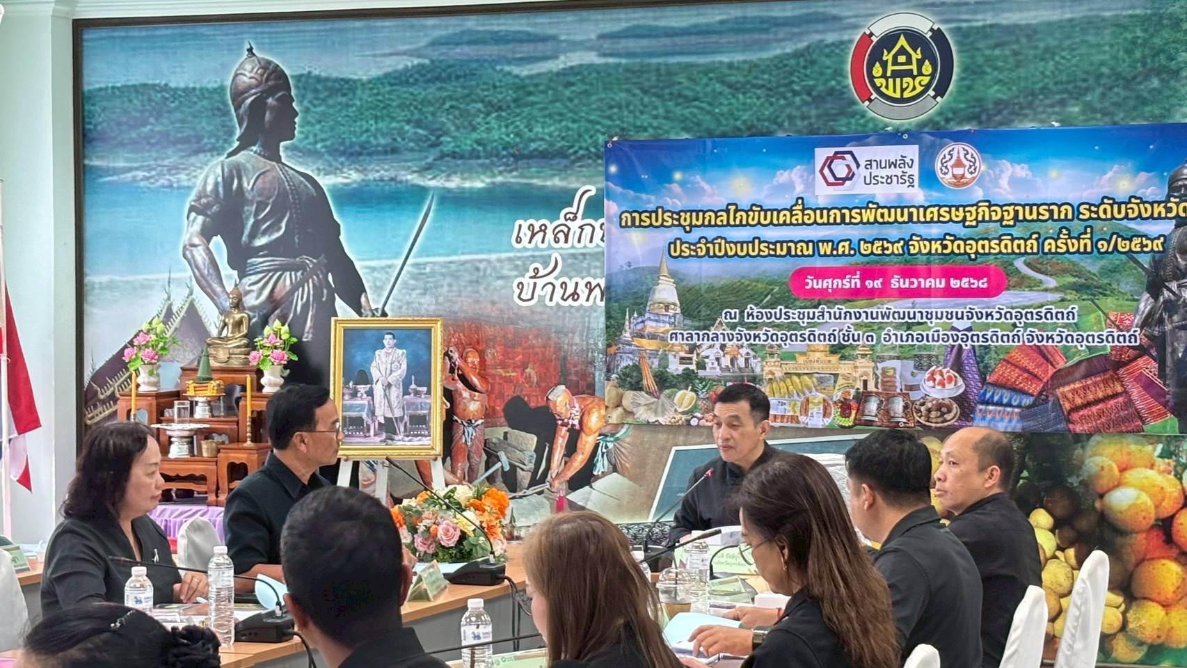 โดยมีนายบรรพจน์ จันทร์งาม พัฒนาการจังหวัดอุตรดิตถ์ นางสาว เยาวรัตน์ สายศรีธิ คลังจังหวัดอุตรดิตถ์ นางสาวกนกอร แสงอรุณ เกษตรและสหกรณ์จังหวัดอุตรดิตถ์ นายณัฐวัฒน์ ราชประสิทธิ์ สื่อมวลชน พร้อมส่วนราชการ หน่วยงาน และองค์กรที่เกี่ยวข้องเข้าร่วมประชุมการประชุมครั้งนี้จัดขึ้นตามโครงการพัฒนากลไกขับเคลื่อนการพัฒนาเศรษฐกิจฐานรากระดับจังหวัดของสำนักงานพัฒนาชุมชนจังหวัดอุตรดิตถ์ เพื่อทบทวนและกำหนดทิศทางการพัฒนาเศรษฐกิจฐานรากและประชารัฐระดับจังหวัด ให้การขับเคลื่อนให้เกิดผลอย่างเป็นรูปธรรม พร้อมทั้งติดตามและสนับสนุนกลุ่มเป้าหมายผ่านภาคีเครือข่ายภาครัฐและประชารัฐที่ประชุมได้กำหนดแนวทางการดำเนินงาน โดยจะจัดประชุมคณะกรรมการประสานและขับเคลื่อนนโยบายสานพลังประชารัฐประจำจังหวัด (คสป.) อย่างน้อย 4 ครั้งต่อปีงบประมาณ ครอบคลุม 3 กลุ่มงานหลัก ได้แก่ ด้านการเกษตร การแปรรูป และการท่องเที่ยวโดยชุมชน มุ่งเน้นการเข้าถึงปัจจัยการผลิต การพัฒนาองค์ความรู้ การตลาด การสื่อสารสร้างการรับรู้ และการบริหารจัดการ เพื่อสร้างรายได้ให้ชุมชน ลดความเหลื่อมล้ำ และยกระดับคุณภาพชีวิตของประชาชนอย่างยั่งยืน