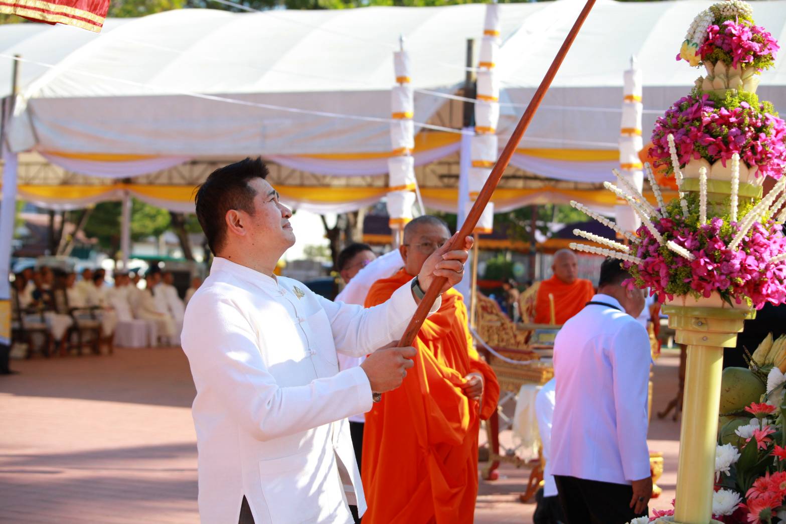 ในโอกาสนี้ ผู้ว่าราชการจังหวัดน่านและผู้มีเกียรติได้ร่วมถวายภัตตาหารและจตุปัจจัยไทยธรรมแด่พระสงฆ์ ก่อนที่พระสงฆ์จะอนุโมทนา ประพรมน้ำพระพุทธมนต์ และให้พรแก่ผู้เข้าร่วมพิธี