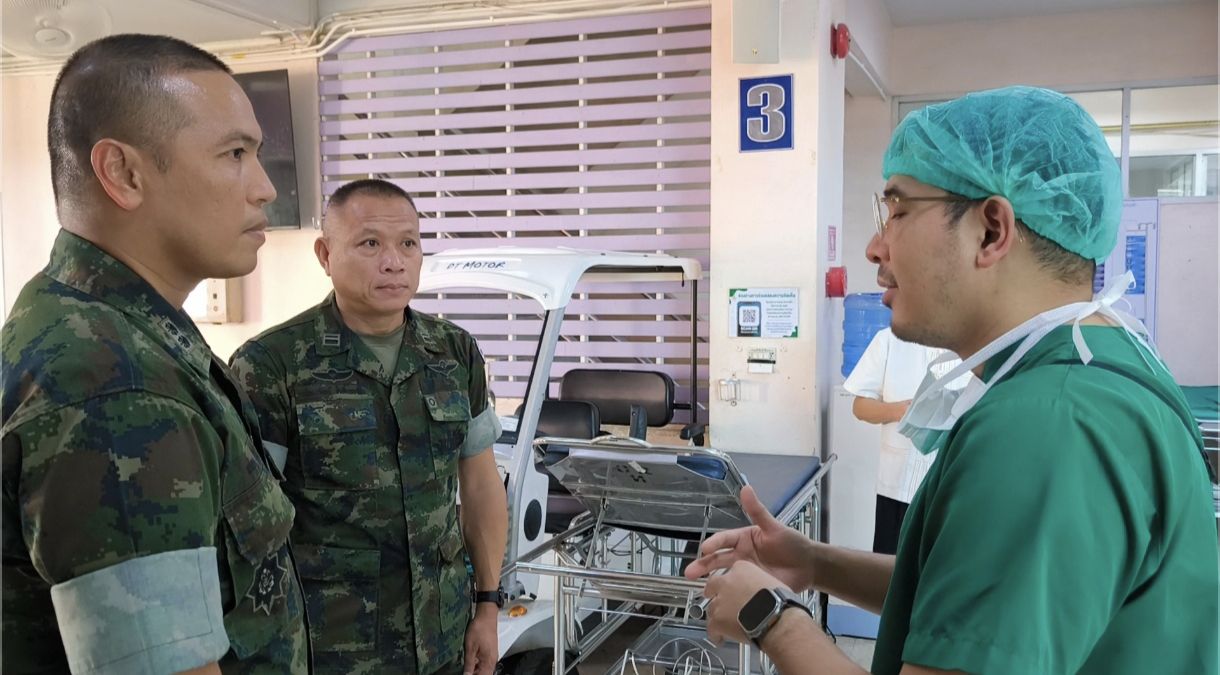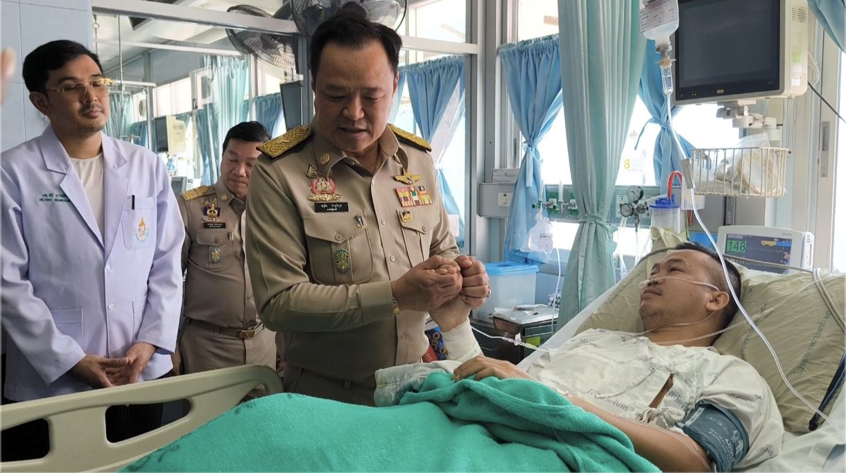 โดยทางนายกรัฐมนตรี ได้สอบถามอาการ พร้อมกล่าวว่า ทราบข่าวเมื่อเช้า ก็รีบเดินทางมาเยี่ยมทันที ขอให้มั่นใจว่า รัฐบาลและกองทัพจะไม่มีวันทอดทิ้งวีรบุรุษทหารกล้าผู้เสียสละเพื่อประเทศชาติและแผ่นดิน ถึงการดูแลรักษาและฟื้นฟูระยะยาว รวมถึงการสนับสนุนอวัยวะเทียมพระราชทาน เพื่อให้กำลังพลสามารถกลับมาดำรงชีวิตและรับราชการได้อย่างเหมาะสม พร้อมส่งความห่วงใยและกำลังใจให้พักผ่อน ดูแลสุขภาพ และฟื้นตัวกลับสู่ภาวะปกติโดยเร็ว ด้าน จ่าเอก เทอดพงศ์ ผมนะรา สังกัดกองร้อยทหารช่าง กองบัญชาการป้องกันชายแดนจันทบุรีและตราด ทหารผู้ได้รับบาดเจ็บ กล่าวว่า ขอบคุณทุกกำลังใจทุกความห่วงใยที่มอบให้ ตนและครอบครัวมีกำลังใจที่ดี ภูมิใจที่ได้ทำหน้าที่อย่างสุดความสามารถ และขอส่งกำลังใจให้กับพี่น้องทหารทุกคนให้ปฏิบัติหน้าที่อย่างเต็มความสามารถเพื่อปกป้องอธิปไตย.