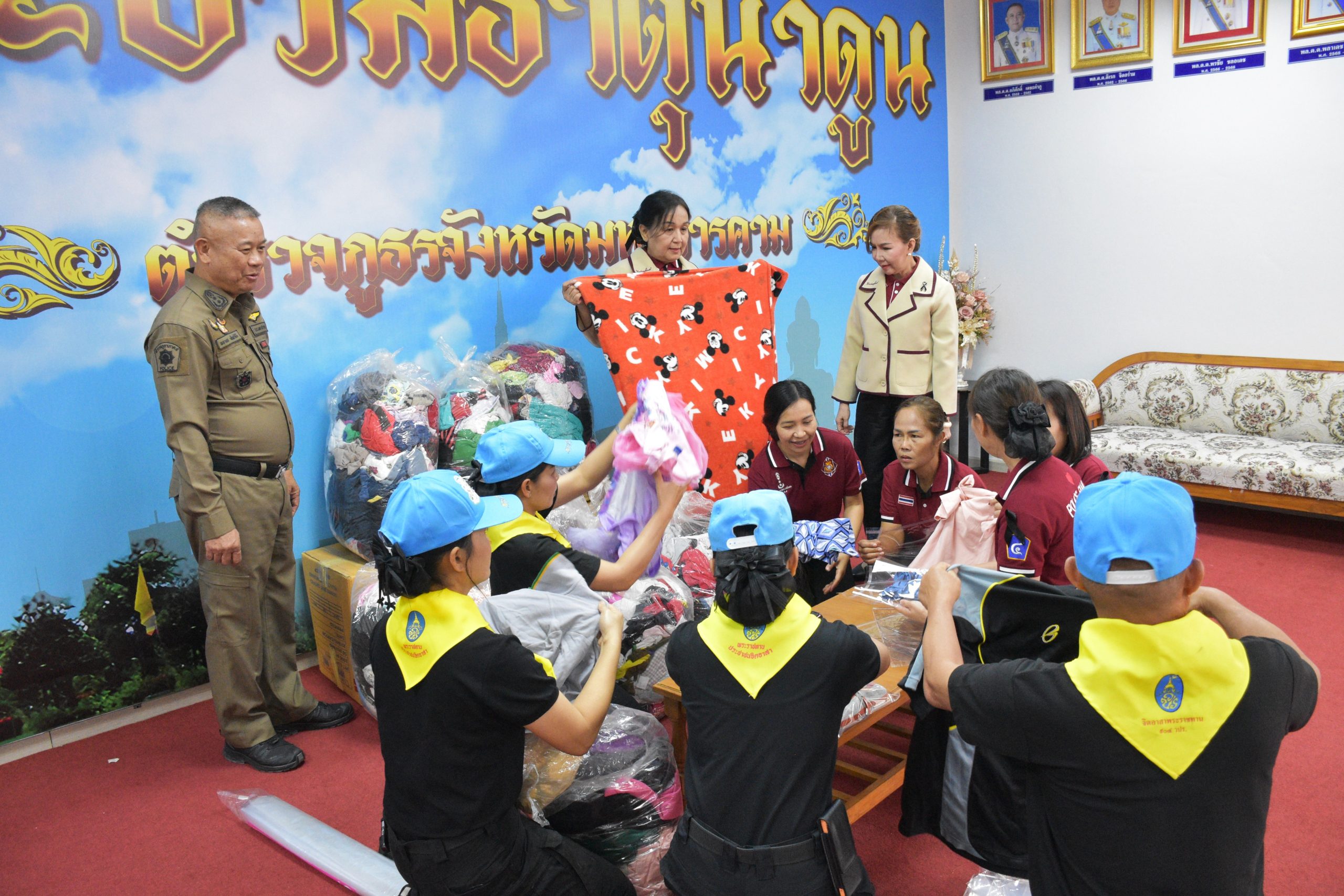 พล.ต.ต.พลาเดช เพ็ชรหว้าโง๊ะ ผบก.ภ.จว. มหาสารคาม คุณจันท์กัปภาส์ เพ็ชรหว้าโง๊ะ ประธานแม่บ้านตำรวจภูธรจังหวัดมหาสารคาม พร้อม กลุ่มแม่บ้านตำรวจและ ข้าราชการตำรวจจิตอาสา ร่วมกันคัดแยกและจัดเตรียมเครื่องนุ่งห่ม ที่ได้รับจากงานบริจาคของกลุ่ม ชมรมแม่บ้านตำรวจ จังหวัด มหาสารคาม ณ ห้องรับรองตำรวจภูธรจังหวัดมหาสารคาม เพื่อสงเคราะห์ช่วยเหลือประชาชนจำนวน 862 คนที่หลบหนีภัยสงคราม ชายแดนระหว่างไทยกับ กัมพูชา มาพักอาศัยตามบ้านในเขตรับผิดชอบทั้ง 25 สถานี (13 อำเภอในจังหวัดมหาสารคาม อีกทั้งยังอำนวยความสะดวกความปลอดภัยให้แก่ผู้อพยพในทั่วถึง
