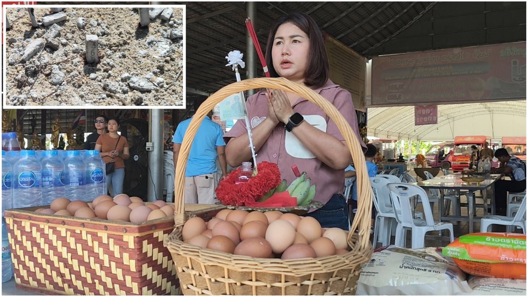 ปทุมธานี สองสาวดวงเฮงแก้บนท้าวเวสฯถวายผลไม้ 11 อย่าง–ไข่ไก่ 200 ฟอง หลังรับโชค 3 งวดติด