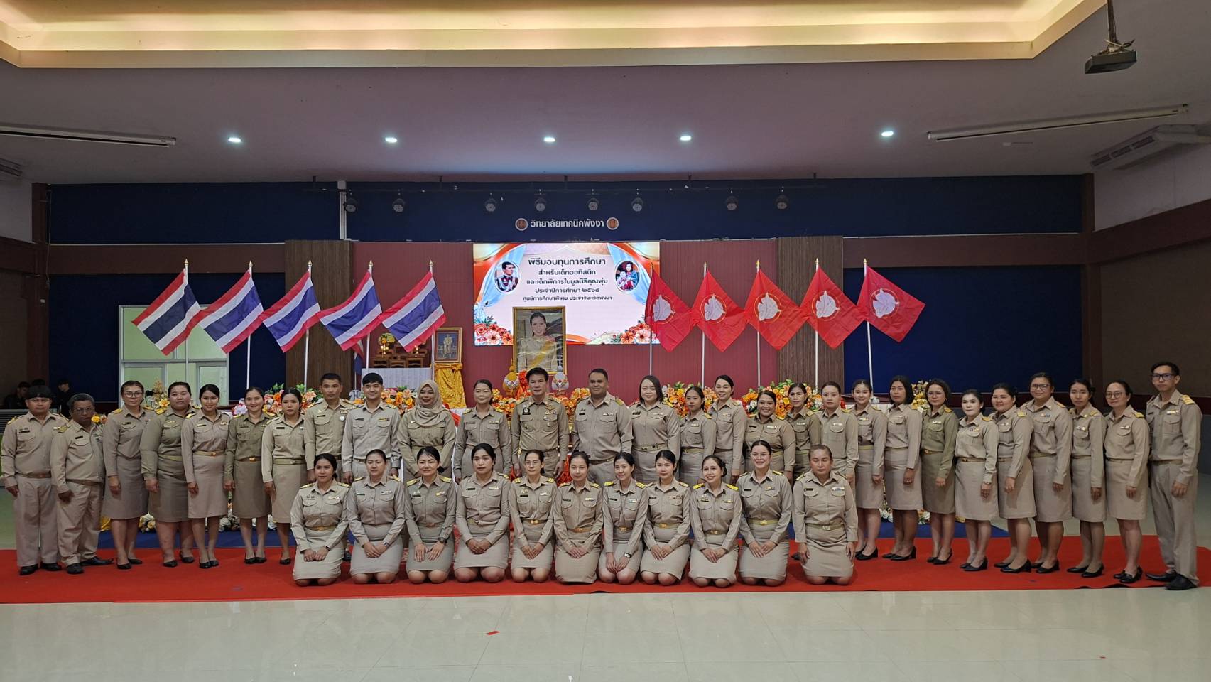 วันที่ (23 ธ.ค. 68) ณห้องประชุมเขาทอย วิทยาลัยเทคนิคพังงา เขต 2 ต.ถ้ำน้ำผุด อ.เมือง จ.พังงา นายไพรัตน์ เพชรยวน ผู้ว่าราชการจังหวัด เป็นประธานในพิธีมอบทุนการศึกษามูลนิธิคุณพุ่ม ทูลกระหม่อมหญิงอุบลรัตนราชกัญญา สิริวัฒนาพรรณวดี ประจำปีการศึกษา 2568 ให้แก่เด็กและเยาวชนผู้พิการในจังหวัดพังงา จำนวน 90 คน โดยมีนางสาวจิตรนุช โคตรดี ผู้อำนวยการศูนย์การศึกษาพิเศษ ประจำจังหวัดพังงา กล่าวรายงาน นางสาวศิริวรรณ จันทิมา ผู้ปกครองนักเรียนกล่าวสำนึกในพระกรุณาธิคุณของทูลกระหม่อมหญิงอุบลรัตนราชกัญญา สิริวัฒนาพรรณวดี ที่ทรงมีพระเมตตาและพระกรุณาธิคุณอย่างหาที่สุดมิได้ต่อเด็กและเยาวชนผู้พิการ โดยมีนางกิตตินันท์ ธนูอินทร์ รองนายกเหล่ากาชาดจังหวัดพังงา คณะกรรมการเหล่ากาชาดจังหวัดพังงา หัวหน้าส่วนราชการ ผู้บริหารสถานศึกษา ครู ผู้ปกครอง และผู้เกี่ยวข้องเข้าร่วมพิธี