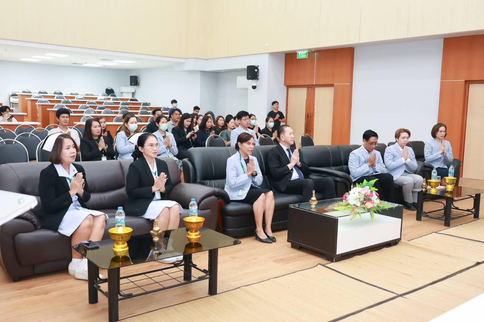 ในพิธีดังกล่าว ได้รับเมตตาจาก พระครูสารกิจประยุต, ดร. รองเจ้าคณะจังหวัดมหาสารคาม พร้อมพระสงฆ์รวม 5 รูป ร่วมเจริญพระพุทธมนต์ โดยมี แพทย์หญิงเบญจมาศ ดวงคำน้อย ผู้อำนวยการศูนย์แพทยศาสตร์ศึกษาชั้นคลินิก โรงพยาบาลมหาสารคาม พร้อมด้วยคณะแพทย์ พยาบาล นักศึกษาแพทย์ และบุคลากรโรงพยาบาลมหาสารคาม เข้าร่วมพิธีอย่างพร้อมเพรียง สะท้อนถึงความร่วมแรงร่วมใจและความผูกพันของทุกภาคส่วนที่มีต่อภารกิจการผลิตแพทย์เพื่อประชาชน