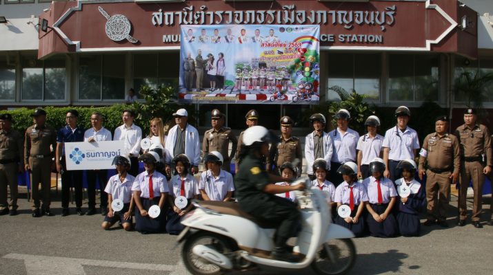 โดยสิทธิ์การมารับหมวกนิรภัยรถจักรยานยนต์ 1คัน 1ใบ มีจำนวน 650 ใบ ซึ่งก่อนทำการแจกหมวก พลตำรวจตรี พศวีร์ เรืองภู่ ผู้บังคับการตำรวจภูธรจังหวัดกาญจนบุรี ได้กล่าวว่าในช่วงเทศกาลคริสต์มาสและปีใหม่ ทางตำรวจภูธรภาค 7 ตำรวจภูธรจังหวัดกาญจนบุรี และ สภ.เมืองกาญจน์ มีความใยในความปลอดภัยในชีวิตทรัพย์สินของประชาชน รวมถึงนักท่องเที่ยว จึงได้ร่วมกับหน่วยงานทั้งภาครัฐและเอกชน ได้นำหมวกนิรภัยมาแจกจ่ายให้กับประชาชนที่ขับขี่รถจักรยานยนต์ได้สวมหมวกนิรภัยมั่นใจ ปลอดภัยทุกเส้นทาง พร้อมได้เน้นย้ำกับผู้ใช้รถจักรยานยนต์ต้องเคารพกฎหมายจารจร เพื่อความปลอดภัย ในชีวิตและทรัพย์สินตนเองและผู้อื่น และจากนั้นให้ประชาชน ทยอยเข้ามารับหมวกใส่ก่อนเดินทางออกจาก สภ.เมือง