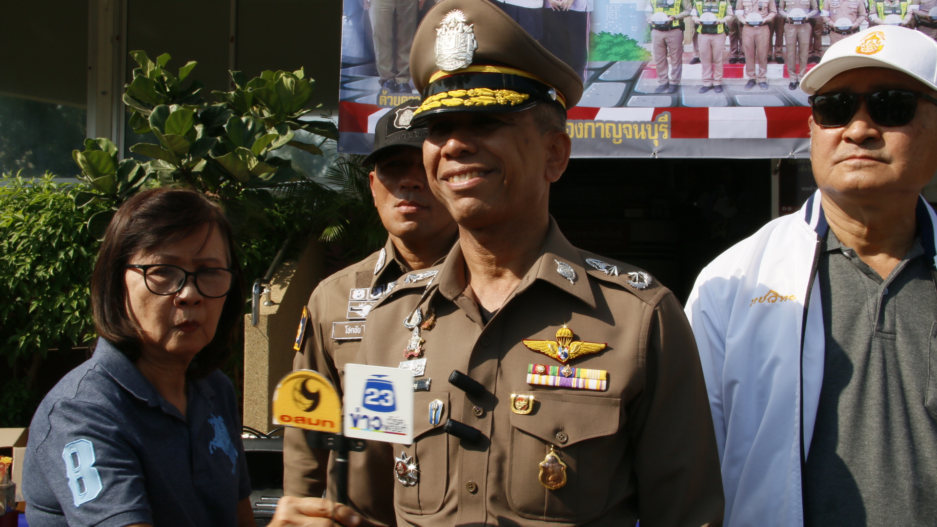 และโอกาสนี้ พลตำรวจตรี พศวีร์ เรืองภู่ ผู้บังคับการตำรวจภูธรจังหวัดกาญจนบุรี ได้ฝากความห่วงใย พร้อมอวยพรในช่วงเทศกาลคริสต์มาส และปีใหม่ 2569 ให้แก่ประชาชนชาวกาญจนบุรี รวมถึงนักท่องเที่ยวที่เดินทางเข้ามาท่องเที่ยว ช่วงวันหยุดยาว รวมถึงความห่วงใยพี่น้องประชาชน ส่วนมาตรการตามกฎหมาย ในช่วง 7 วันอันตรายเราจะใช้การตักเตือนก่อน ในช่วงแรกได้รับความปลอดภัยตลอดปีใหม่ นี้ เส้นทางมอเตอร์เวย์ M 81 เปิดใช้ตลอดเส้นทาง คาดว่าการจารจรที่เข้ามาจังหวัดกาญจนบุรี จะหนาแน่น เราได้กำชับเจ้าหน้าที่ตำรวจทุก สภ. ที่เข้าสู่กาญจนบุรี เข็มในการดูแลบริการนักท่องเที่ยวเป็นอย่างดีเพื่อความปลอดภัย อย่าขับรถเร็ว ขับรถหวาดเสียว ขับรถย้อยศร หรือเมาอย่าขับเด็ดขาด เราจะเน้นในการตรวจเป็นพิเศษ จึงต้องบังคับใช้กฎหมาย ควบคู่กับการรณรงค์