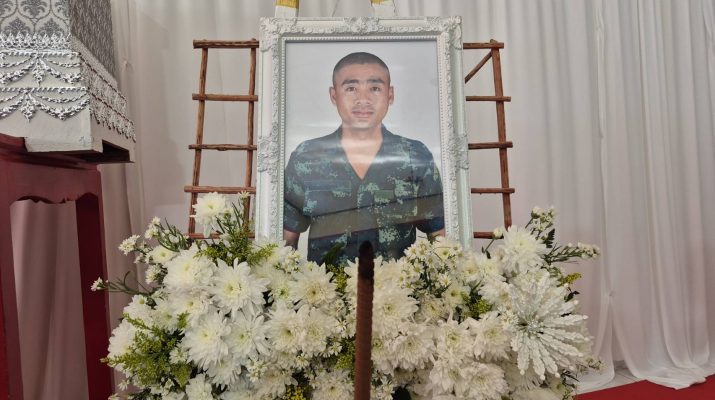 จากนั้นเวลา 17.00 น. นายเสนีย์ ส้มเขียวหวาน ผู้ว่าราชการจังหวัดอำนาจเจริญ เป็นประธานพิธีเชิญตะกร้าและเงินช่วยเหลือจำนวน 20,000 บาท มอบให้แก่ครอบครัวของพลทหารธนพัฒน์ นันทะวงศ์ ต่อด้วยพิธีอัญเชิญน้ำหลวงพระราชทาน และพวงมาลาพระราชทานจากพระบาทสมเด็จพระเจ้าอยู่หัว และพระบรมวงศานุวงศ์ พระราชทานและประทาน วางหน้าหีบศพ ก่อนจะเป็นประธานในพิธีสวดพระอภิธรรมศพ โดยศพของพลทหาร ธนพัฒน์ นันทะวงศ์ จะตั้งบำเพ็ญกุศลที่วัดเชือกนอก ตำบลนาจิก อำเภอเมืองอำนาจเจริญ จังหวัดอำนาจเจริญ และประกอบพิธีธรรมสวดพระอภิธรรม ในทุกคืนจนถึงวันที่ 28 ธันวาคม 2568 จากนั้นในวันที่ 29 ธันวาคม 2568 จะมีพิธีพระราชทานเพลิงศพวีรบุรุษทหารกล้าต่อไป