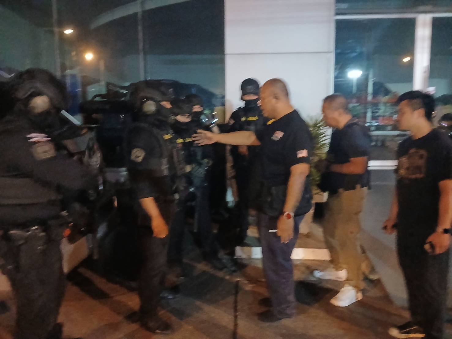 เจ้าหน้าที่อยู่ระหว่างควบคุมตัวผู้ต้องหาส่งพนักงานสอบสวน เพื่อดำเนินคดีตามกฎหมายต่อไป