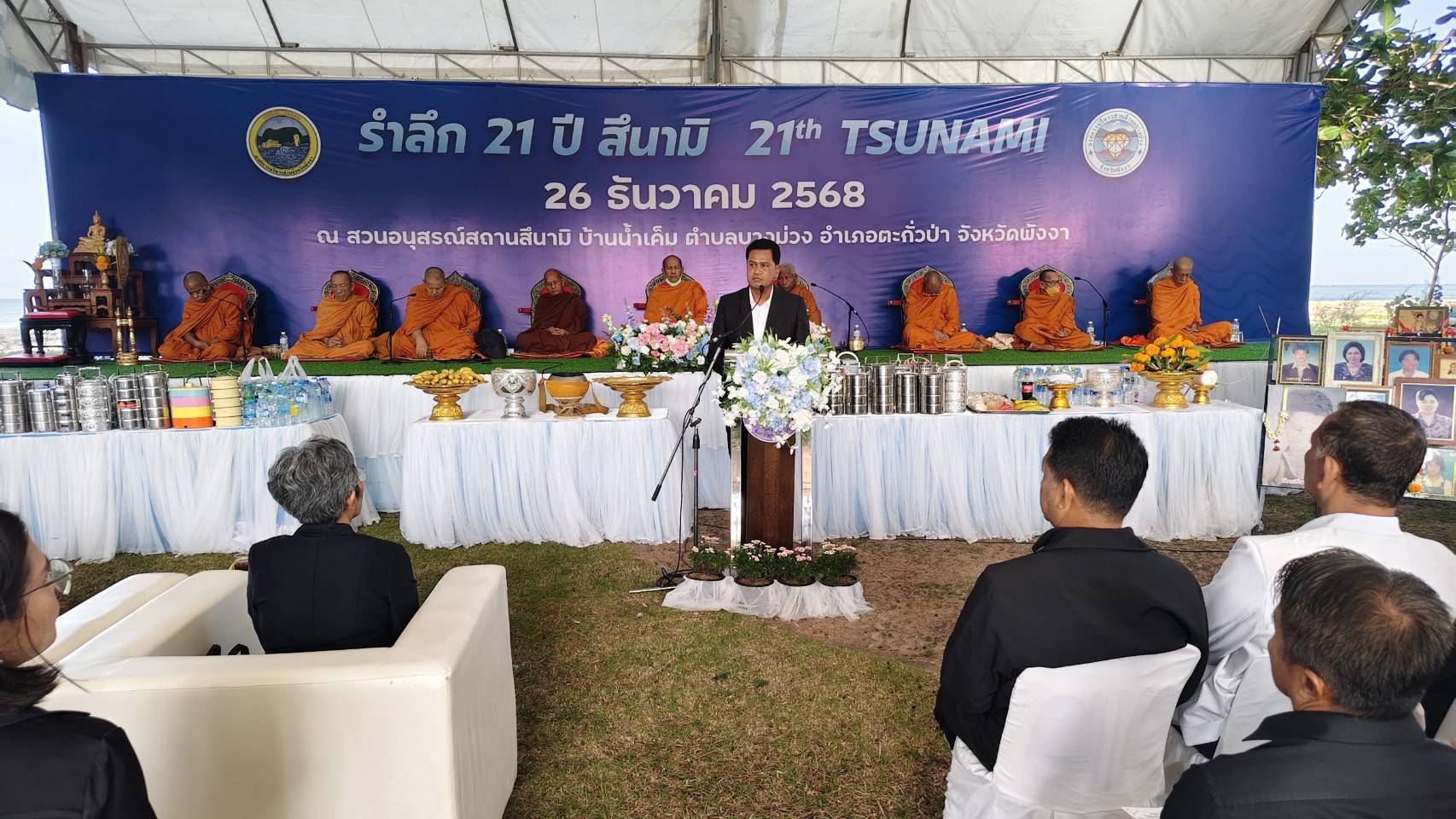พังงา-จัดงานรำลึก 21 ปี เหตุการณ์สึนามิ พัดถล่มในพื้นที่ 6 จังหวัดทะเลฝั่งอันดามัน โดยมีการจัดพิธีวางดอกไม้ไว้อาลัยให้ผู้ที่เสียชีวิต และพิธีกรรมทางศาสนาทำบุญให้ทหารกล้ารบชายแดน