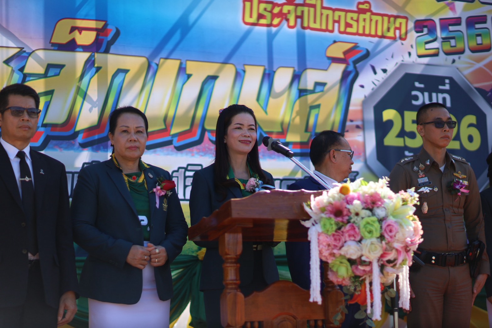 ที่สนามกีฬาโรงเรียนกาฬสินธุ์พิทยาสรรพ์ ดร.วิภา สายรัตน์ ผู้อำนวยการสำนักงานเขตพื้นที่การศึกษามัธยมศึกษากาฬสินธุ์ เป็นประธานพิธีเปิดการแข่งขันกีฬาภายใน “ขี้เหล็กเกมส์” ประจำปีการศึกษา 2568 โดยมีดร.จารุวรรณ รัตนมาลี ผู้อำนวยการโรงเรียนกาฬสินธุ์ คณะผู้บริหาร ครู บุคลากรทางการศึกษา นักเรียน และผู้ปกครองร่วมกิจกรรมอย่างพร้อมเพรียง