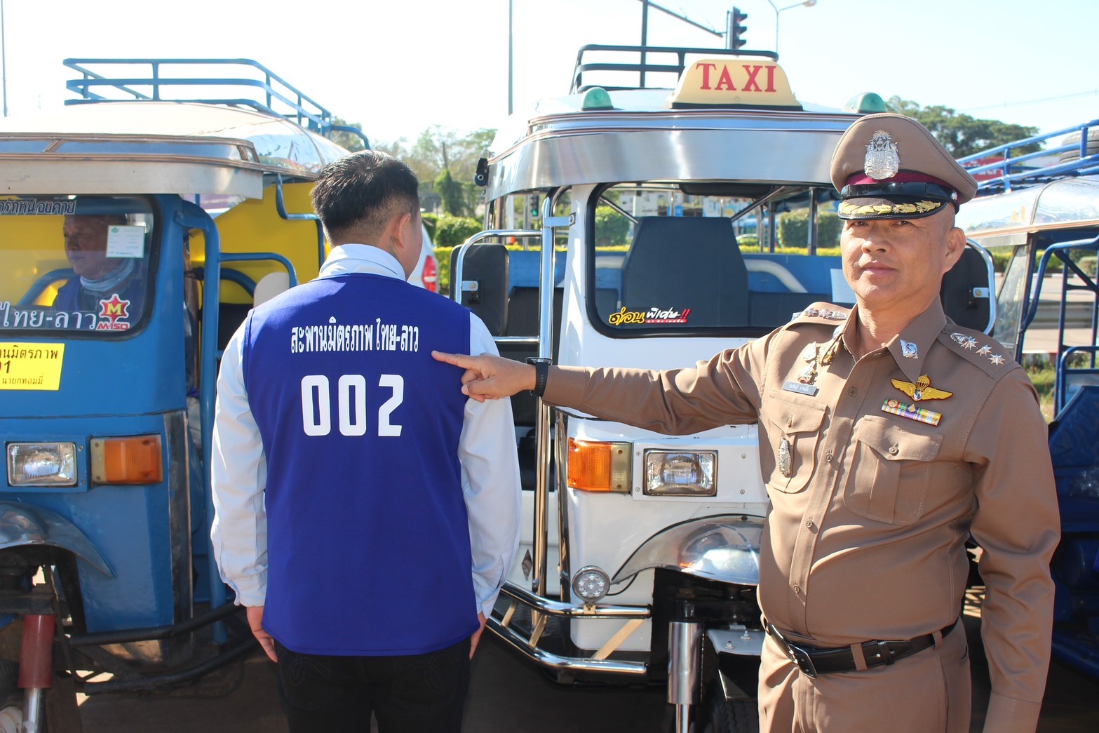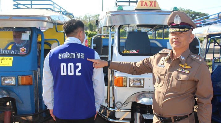 พ.ต.ท.ไพบูลย์ จันธิราช สว.อก.สภ.เมืองหนองคายพร้อมหน่วยงานที่เกี่ยวข้องและผู้ประกอบอาชีพสามล้อรับจ้างเข้าร่วม