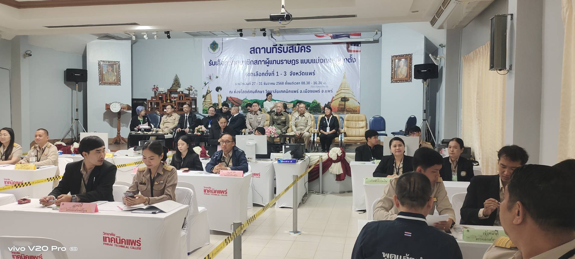 เมื่อเวลา 08.30 น.วันที่ 27 ธันวาคม 2568 ที่ห้องโสตทัศนศึกษา วิทยาลัยเทคนิคแพร่ อำเภอเมืองแพร่จังหวัดแพร่ นายชนวิท พิมพิลา ผู้อำนวยการการเลือกตั้งประจำจังหวัดแพร่พร้อมคณะกรรมการการเลือกตั้งประจำเขตเลือกตั้งเขต 1 เขต 2 และ 3