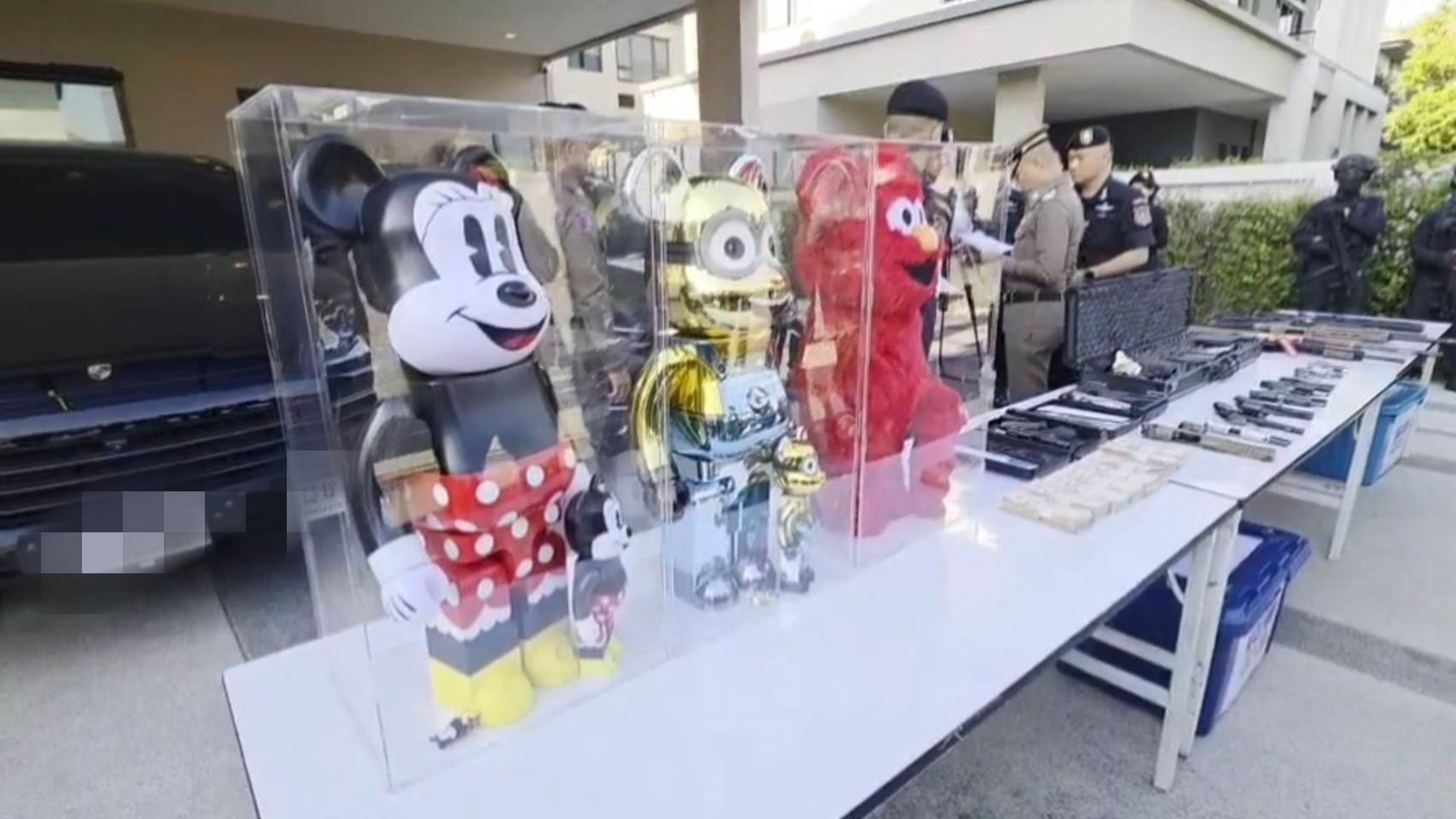การจับกุมในครั้งนี้เป็นเครือข่ายบริษัทขนส่ง 4 บริษัท โดยใช้กรรมการบริษัทจดแจ้งสลับกันไปมา และไม่มีกิจกรรมเคลื่อนไหวตั้งแต่เดือนกุมภาพันธ์ ซึ่งจะทำหน้าที่รับฟอกเงินให้กับเครือข่ายยาเสพติด รวมแล้วทั้งสิ้น 7 หมายจับ ตรวจค้น 22 เป้าหมาย ในพื้นที่กรุงเทพฯ นนทบุรี ปทุมธานี ลพบุรี ตรัง ซึ่งจุดที่ทีมข่าวเข้ามาสังเกตการณ์ คือบ้านหรูแห่งหนึ่งย่านบางแวก เขตตลิ่งชัน จับกุมผู้ต้องหา 2 คน พร้อม ตรวจยึดของกลาง เป็นอาวุธปืนหลายขนาดรวม 16 กระบอกเงินสด 1 ล้านบาท รถยนต์หรู 2 คัน และอาร์ตทอย 3 ตัว